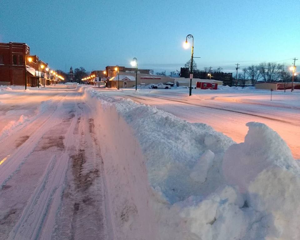 Then as I approached main street I could hear and see the Madison city crew coming down main street towards the highway. It was a glorious site! When I got to main street I waved at the crew as they were heading south to the fairgrounds. The wave was more of a thank you. I turned north down main street and snapped a few selfies and pictures of main street Madison. I was the only person on main street, no cars or trucks just me. Looking at the historic courthouse down at the end of main street with the sun starting to shine on the building it was a really pretty site with the main street lights on and the white snow. I enjoy our small town of Madison.