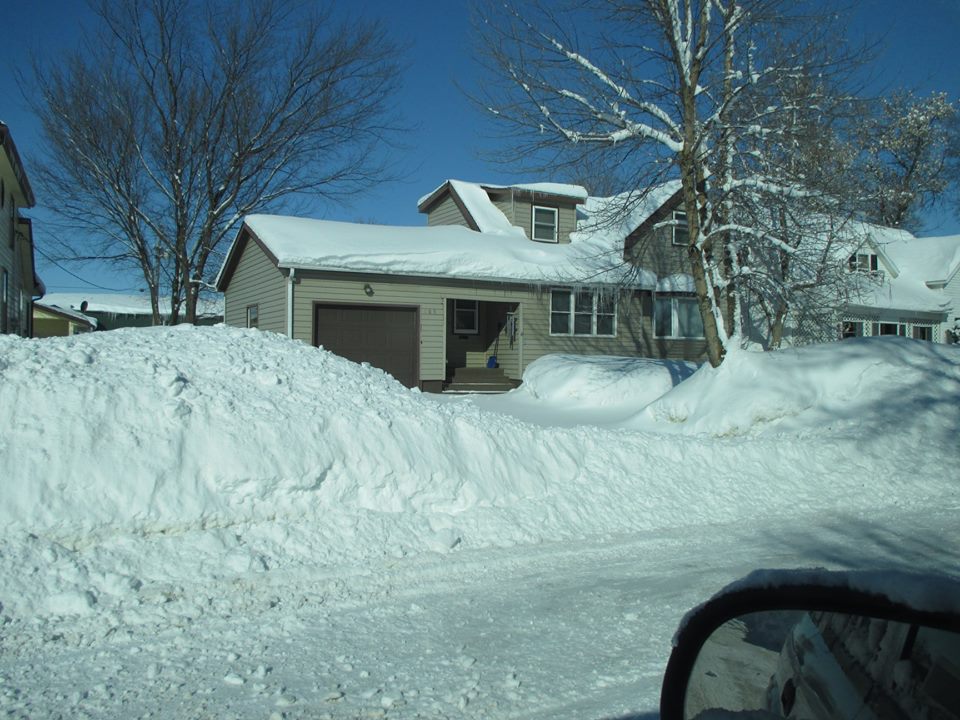 Let me tell you about my walk to work Sunday morning. I had to fill in at the radio station for Kathy who lives in the Gary, South Dakota area. Obviously Kathy couldn’t make it in to work because of all the snow that fell on Saturday and then the nasty wind Saturday night. Madison received 8 inches of snow, but many communities around Madison received a foot of snow or more. So my walk to work around 7am was very interesting. I have about 5 blocks to walk to the radio station.