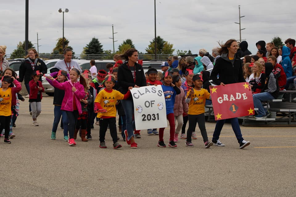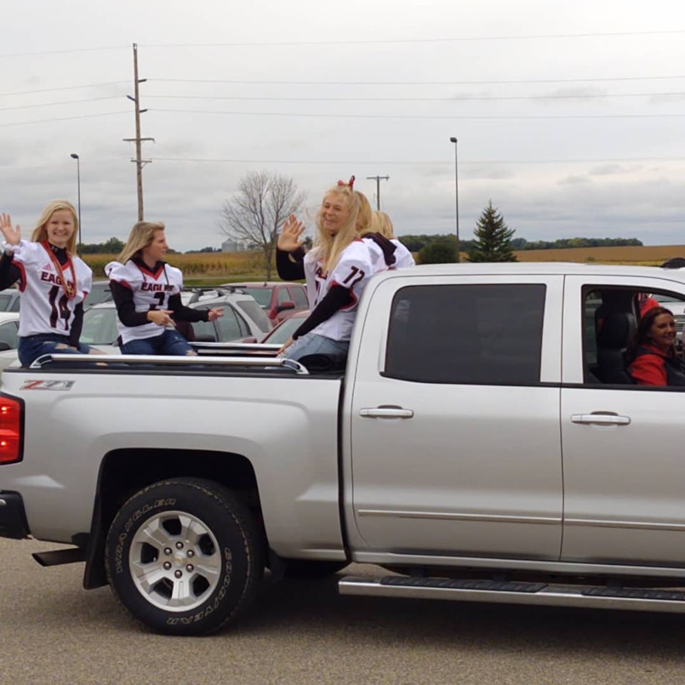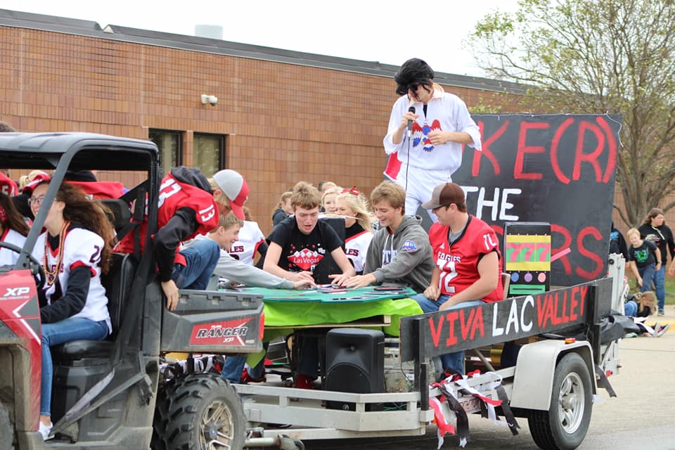Last Friday afternoon I was at LQPV High School for all the homecoming festivities. A few years ago they moved the homecoming parade out to the high school, instead of doing separate parades in Appleton and Madison. In my opinion, that was a great decision. All the elementary kids and staff participate in the parade and pepfest in the gym. Along with the middle school, junior high and high school students. The floats are very creative and some are pretty funny. The gym is almost full on both sides for the pepfest making it a very exciting atmosphere. The students do a great job putting on games and skits.