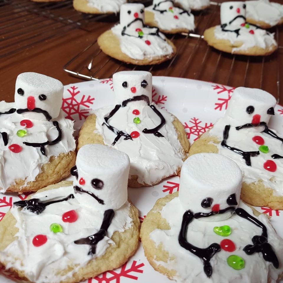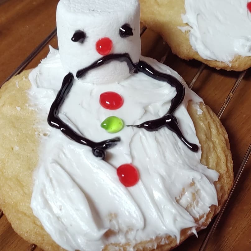 Again this year I entered the Madison Chamber of Commerce baking contest. It is one of my favorite holiday events. This year I got creative with my cookies. I was surfing the internet about a month ago and ran across a sugar cookie with a melted snowman on top of it. I thought that was a genius idea and it looked easy to make. So I bought some marshmallows and some tubes of frosting and went to town. I think they turned out great. It was sure fun to make the snowmen on the cookie.