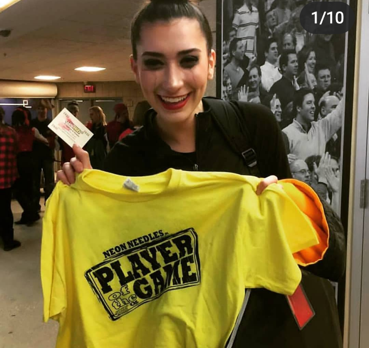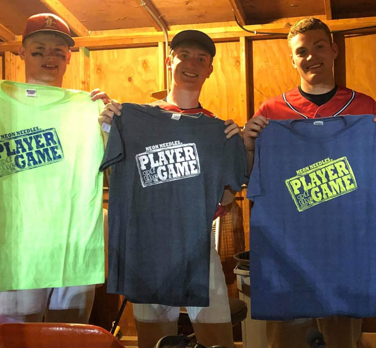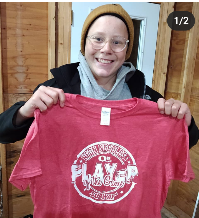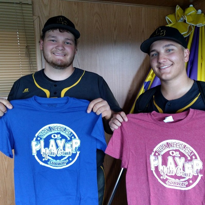 The Player of the Game t-shirts and Subway value coupons have been a big hit over the years. What makes me really happy is seeing the kids wearing their shirts. I have received emails, letters, and cards of thanks from the kids and parents. When I hand the kids a t-shirt I make sure and tell them to thank Neon Needles and Subway, because they are the ones that make it happen.