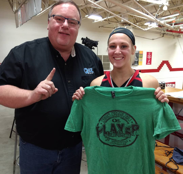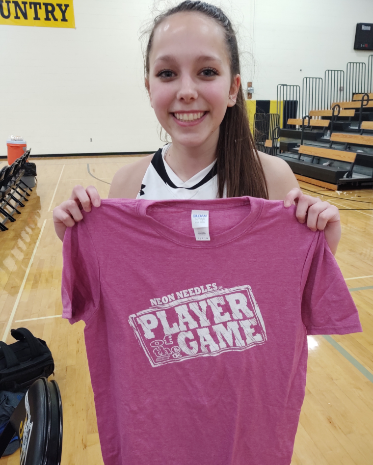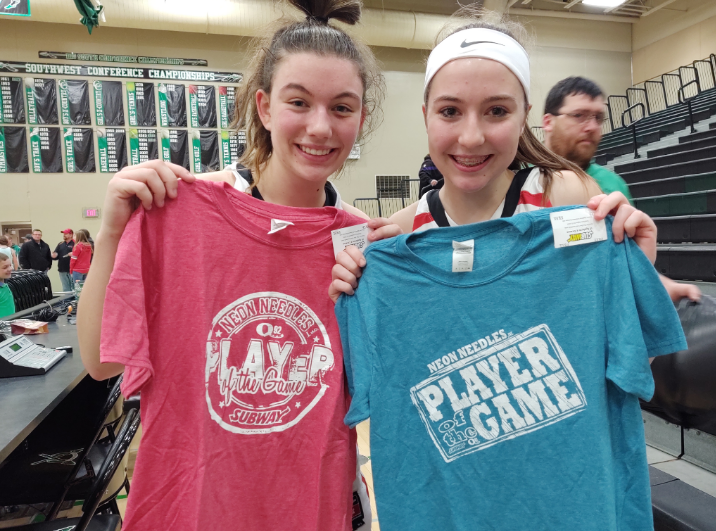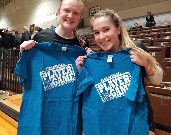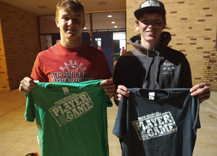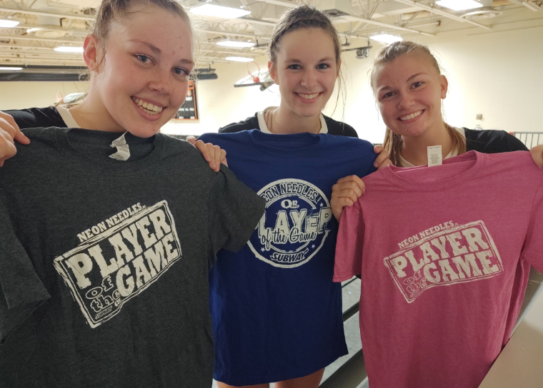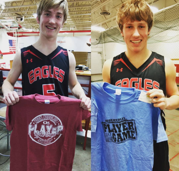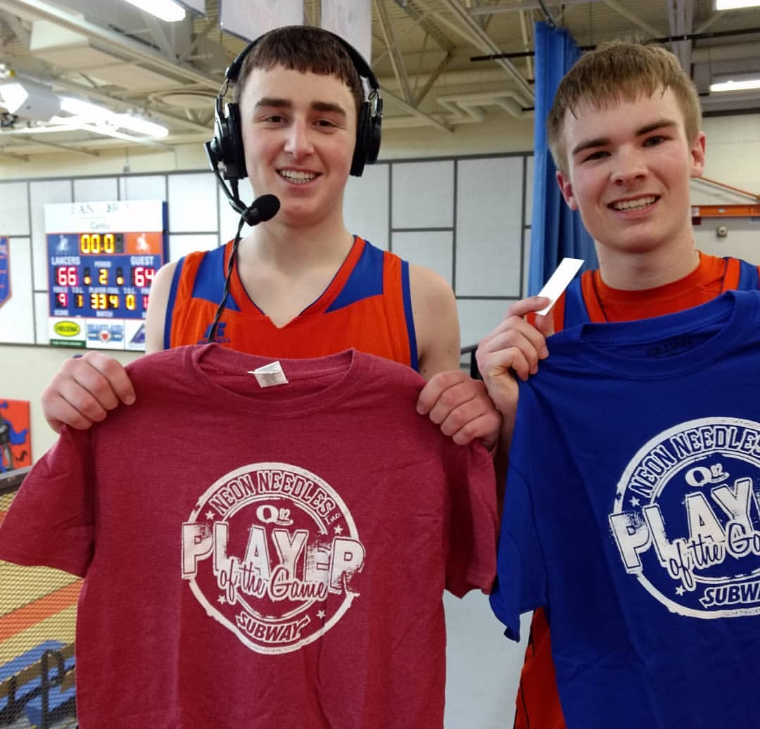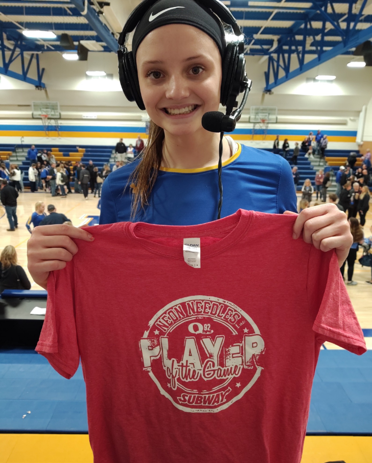 It’s actually a partnership with Neon Needles, Subway and KLQP radio. Gary Hendrickx owner of the Subways in Appleton, Dawson and Clara City wanted to recognize the POG with a free Subway meal coupon. So that was added to the t-shirts. For me it’s been so rewarding and fun to name a POG and visit with each student athlete after the game. I usually take their picture to post on our social media sites.