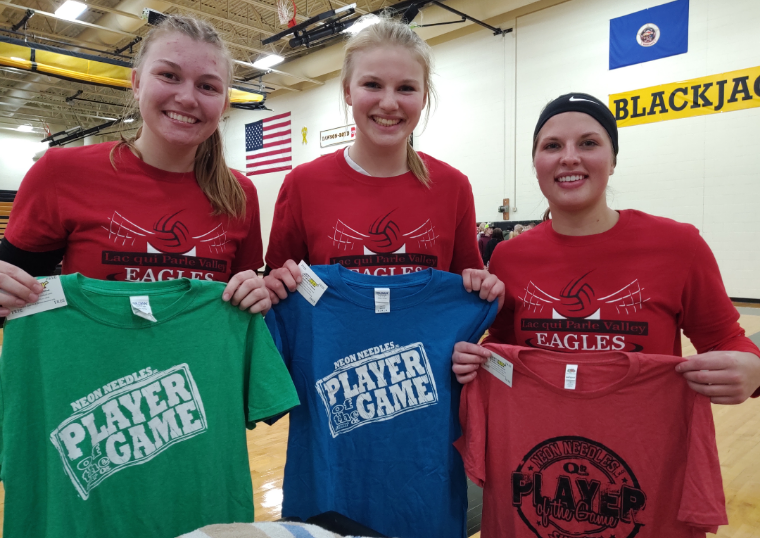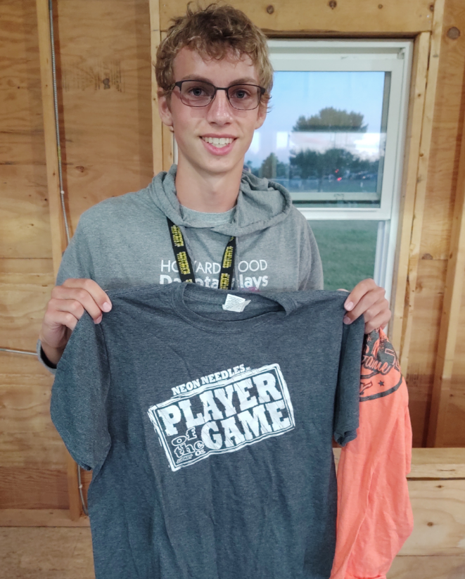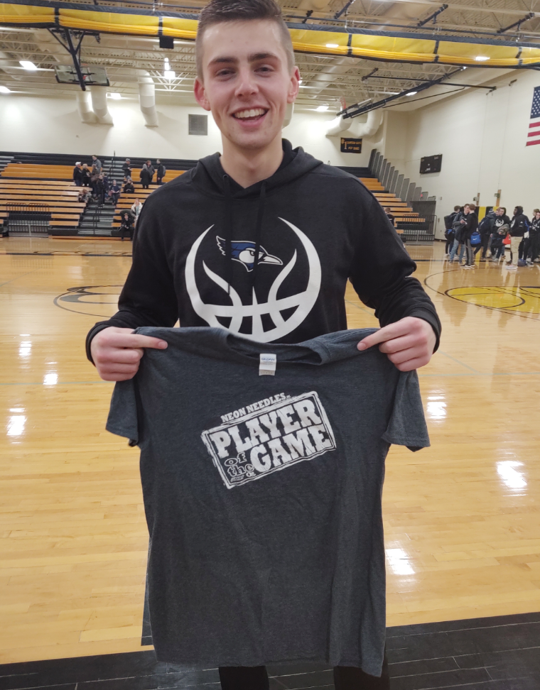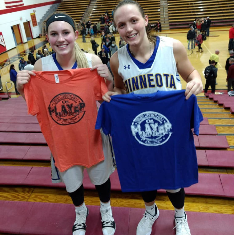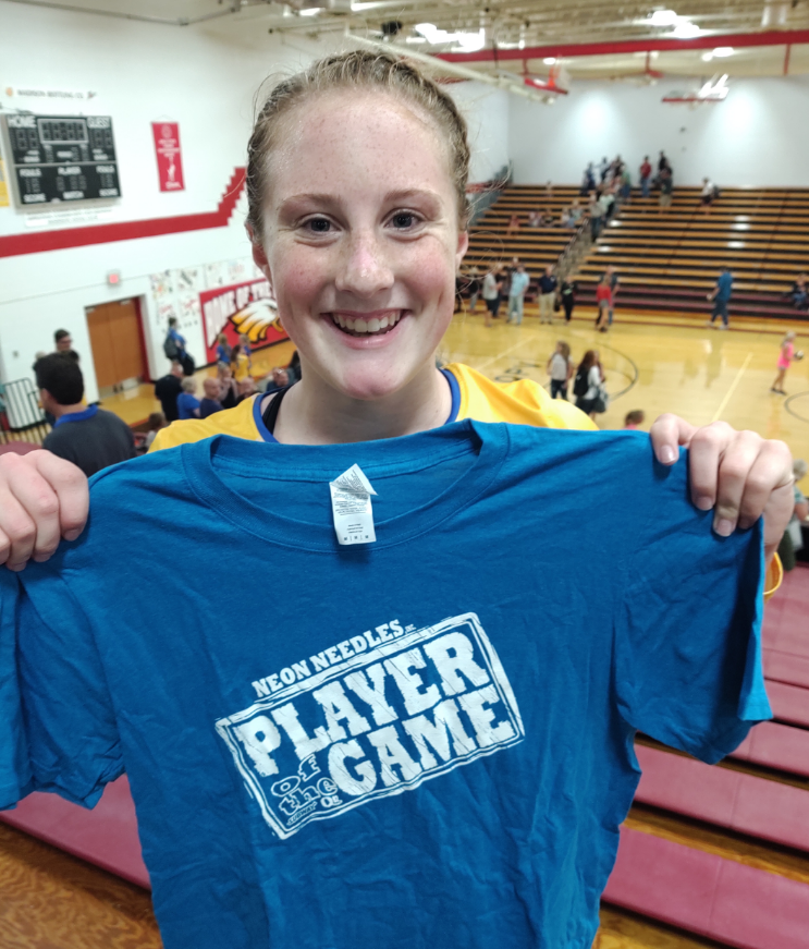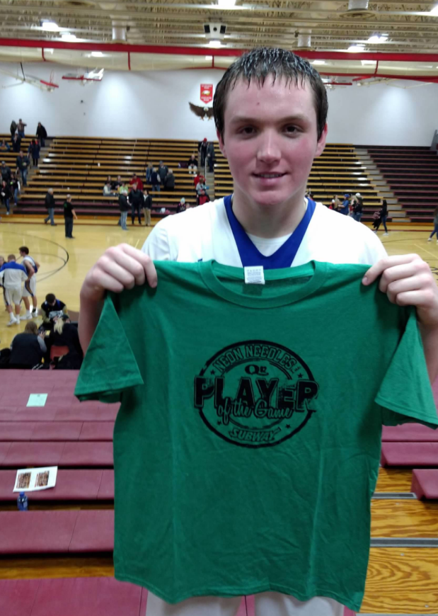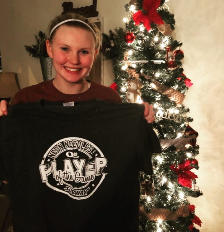 It’s actually a partnership with Neon Needles, Subway and KLQP radio. Gary Hendrickx owner of the Subways in Appleton, Dawson and Clara City wanted to recognize the POG with a free Subway meal coupon. So that was added to the t-shirts. For me it’s been so rewarding and fun to name a POG and visit with each student athlete after the game. I usually take their picture to post on our social media sites.