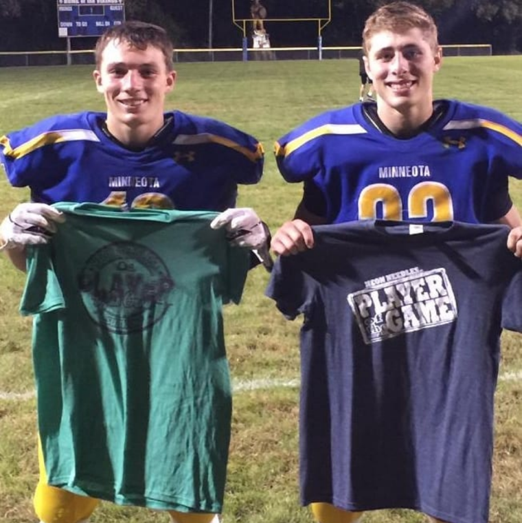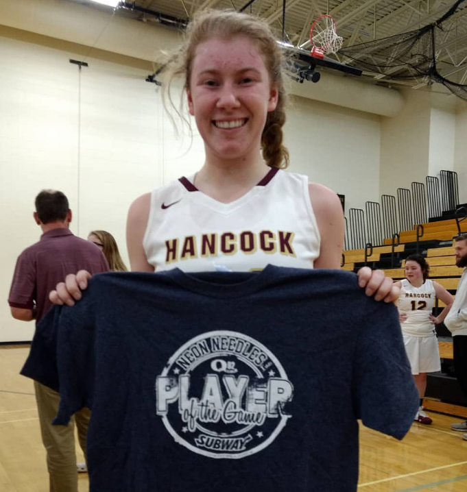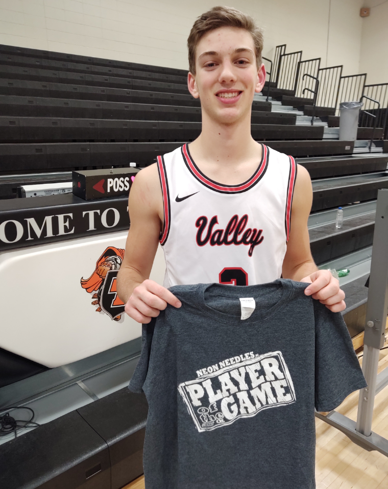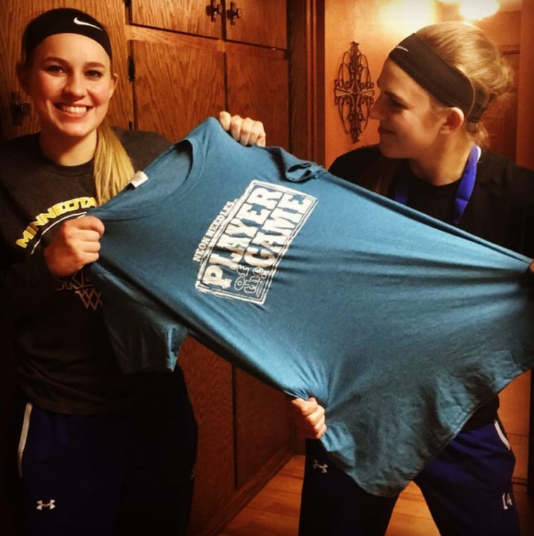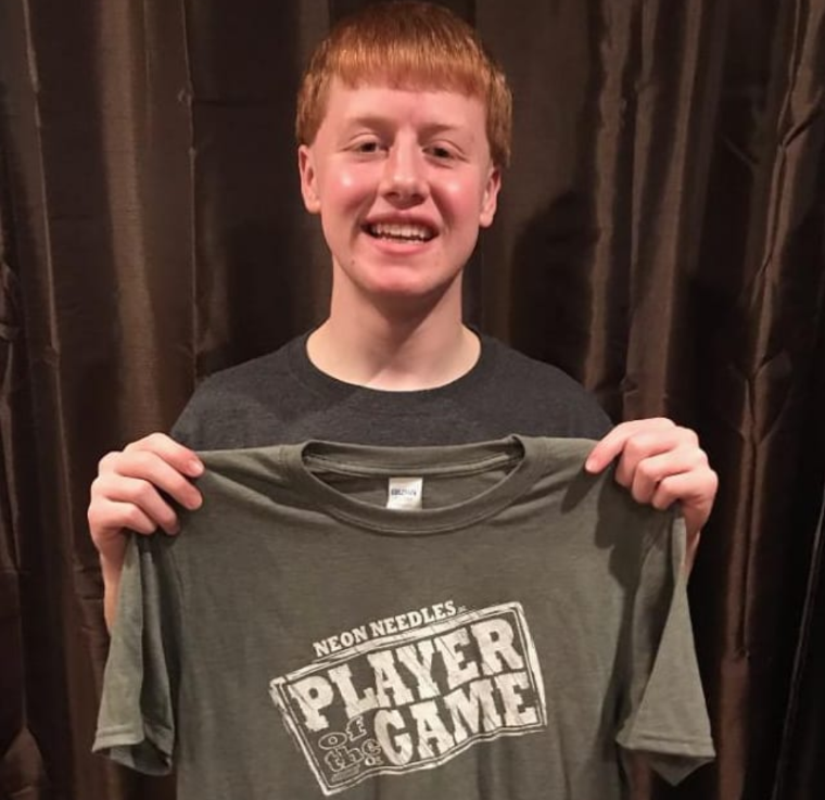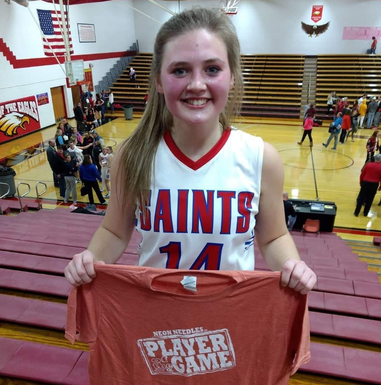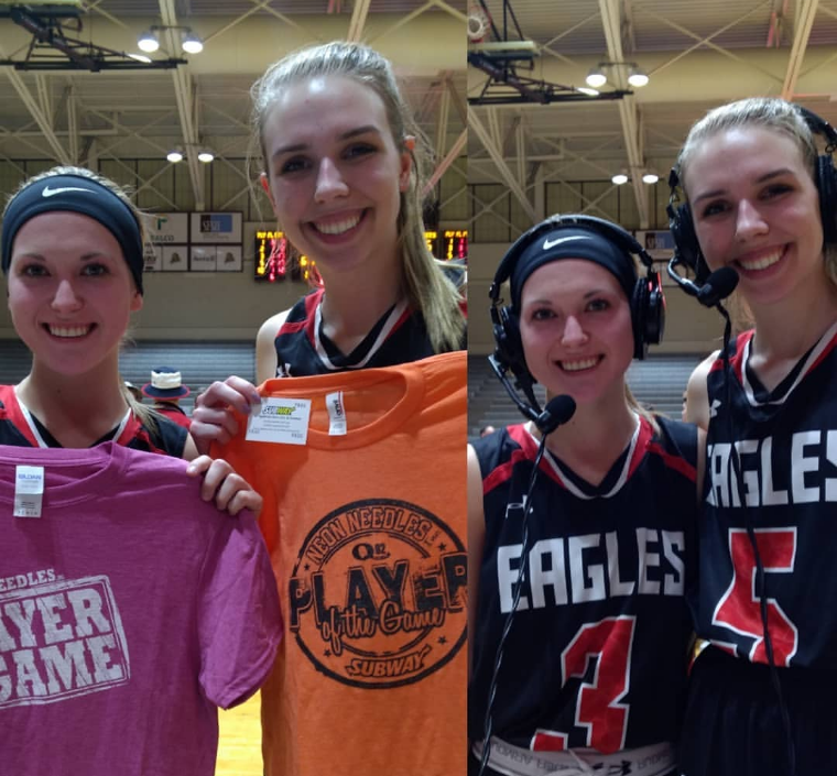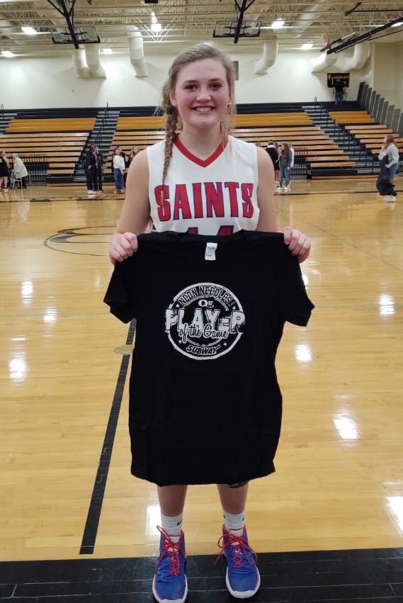 It’s actually a partnership with Neon Needles, Subway and KLQP radio. Gary Hendrickx owner of the Subways in Appleton, Dawson and Clara City wanted to recognize the POG with a free Subway meal coupon. So that was added to the t-shirts. For me it’s been so rewarding and fun to name a POG and visit with each student athlete after the game. I usually take their picture to post on our social media sites.