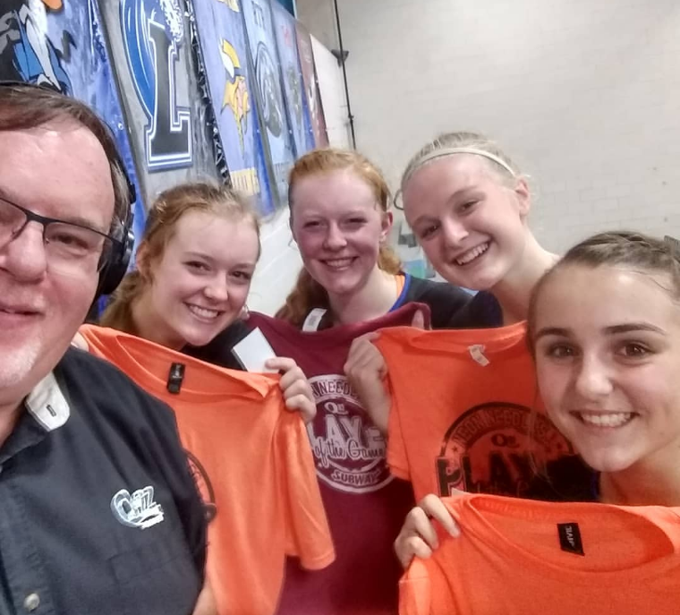 I think my favorite POG picture is with some of the Canby volleyball players that I named POG! Actually I named four of them! They had a tremendous match against Maccray in Clara City. After interviewing Coach Wright and the four girls, I presented the girls with the POG t-shirts. So as usual I took a selfie with them for my social media sites. What I didn’t know at the time was that a mom was taking a picture of me and the girls taking my selfie. I thought that was a pretty cool picture.