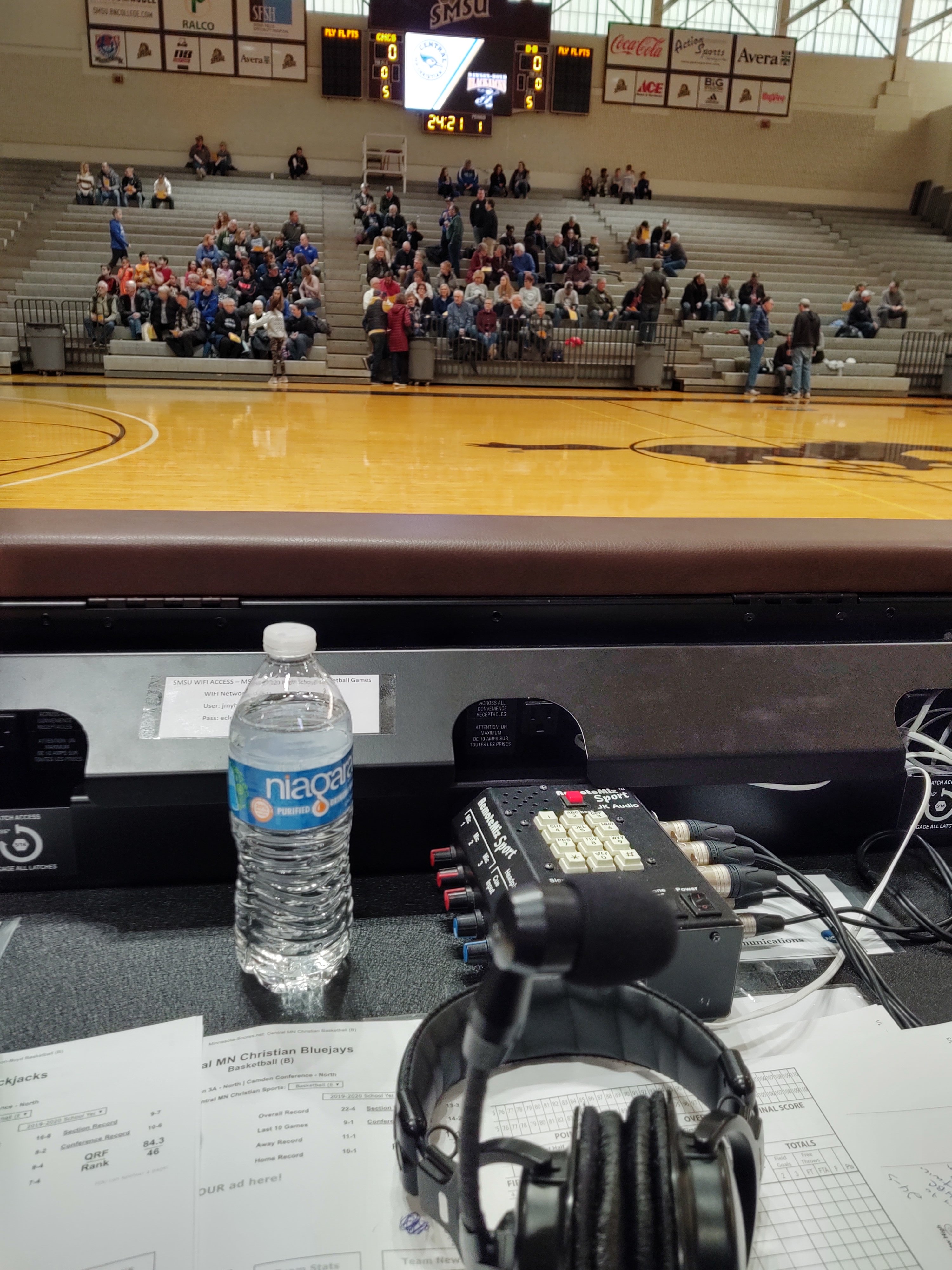 You can find me sitting along press row at the RA Facility in Marshall during section basketball playoffs. I’m pretty easy to spot with my headset on. This week some fans sitting behind me got to see more of me than I wanted.