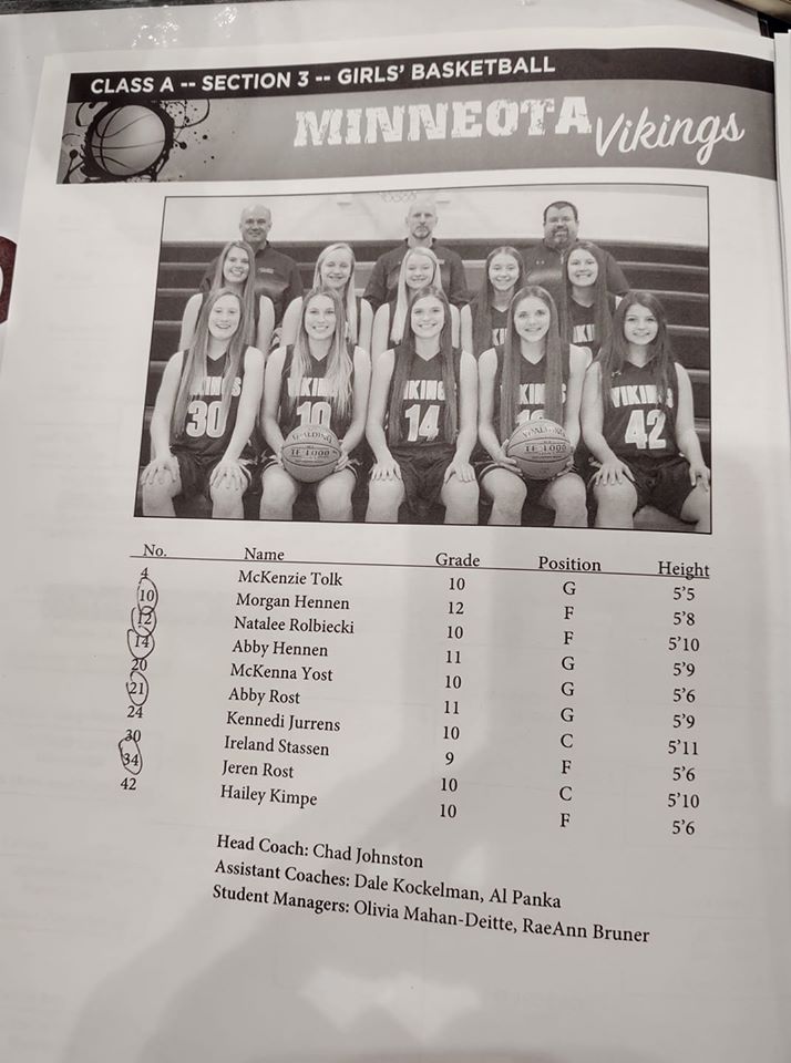 I guess it’s another life lesson. I know some of you are saying that there is more to life than sports, Paul. You are right, but if you love something and are passionate about it and it’s taken away from you, you have a right to be upset about it and I am. I do know that the God I serve is in charge and he has a plan for our lives. He tells us to cast all of our cares on him (1 Peter 5:7) and when we do he puts peace in our heart. Life goes on and we need to celebrate another fun and great season the Minneota Viking girls’ had on the court.