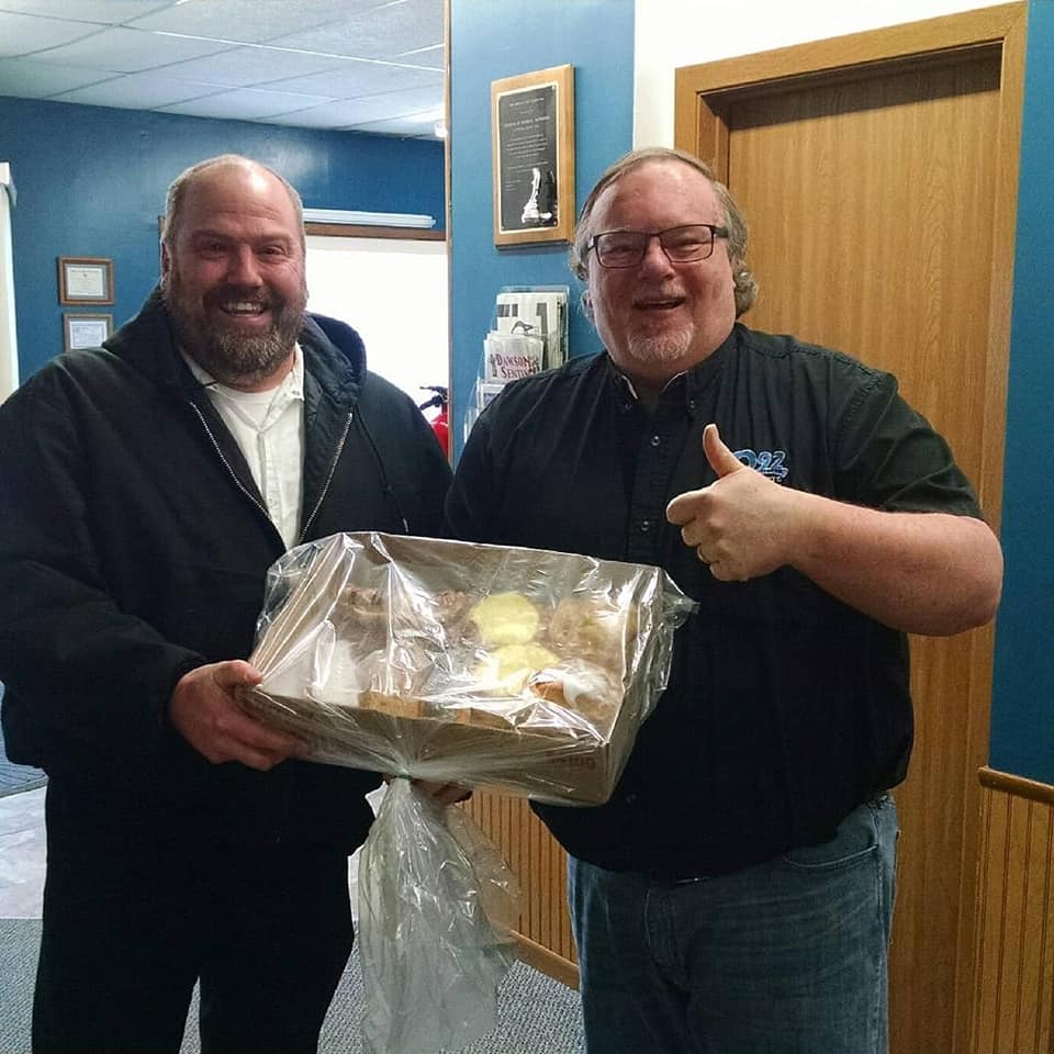 At work, we have a radio program called Fashionista Fridays with Monica. Monica Bothun with Monica’s Apparel and Accessories in Dawson usually comes over to the studio to do the show, she brings some of her apparel with her to hang up in the studio to talk about. Monica always brings donuts or bakery rolls with her for Maynard and me. Because of the Corona-virus, she decided to stay home and do the show from her store over the phone. That would mean no bakery rolls for us. About an hour after the show Scott from Jubilee Foods walks in with a box of rolls from Monica! What a lady! That made me smile!