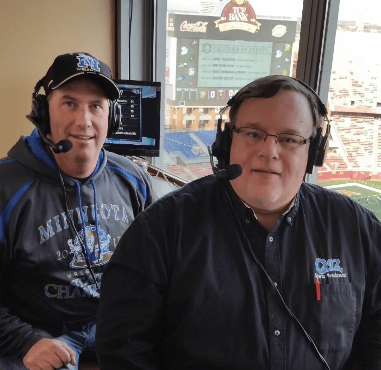Broadcasting a Minneota state football game with my friend Steve Hennen. Minneota beat Minneapolis North for the championship! Really nice press box!