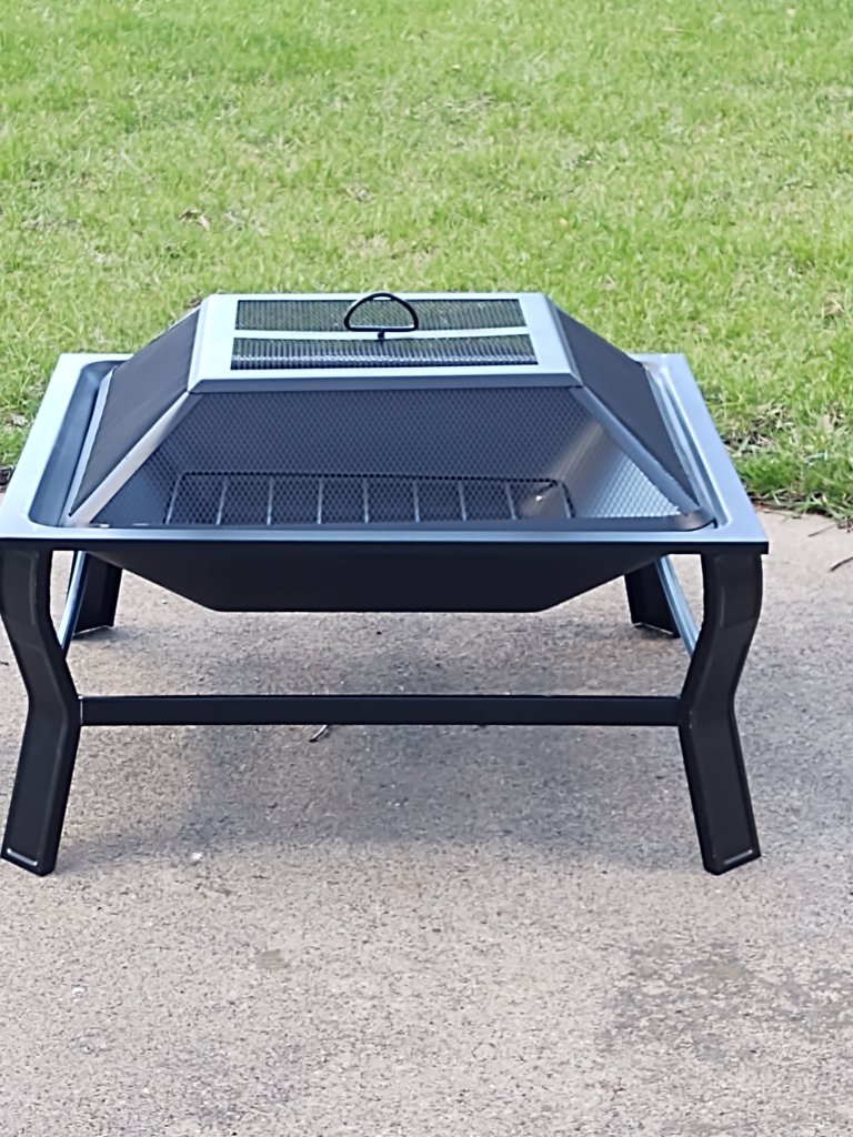 My wife thought we needed a new fire pit for the patio. So Saturday afternoon I dragged the big box out on the patio to put the new fire pit together. I loathe assembling things! On the box it says EASY ASSEMBLY, Assemble in 30 minutes or less! I laughed outload and said to myself, Yeah right. So my goal was to do a good job and try and get it assembled in under 30 minutes. Well, that didn’t happen. I did get it put together, but it took me about an hour and a few frustrating moments. The finished product looks nice.