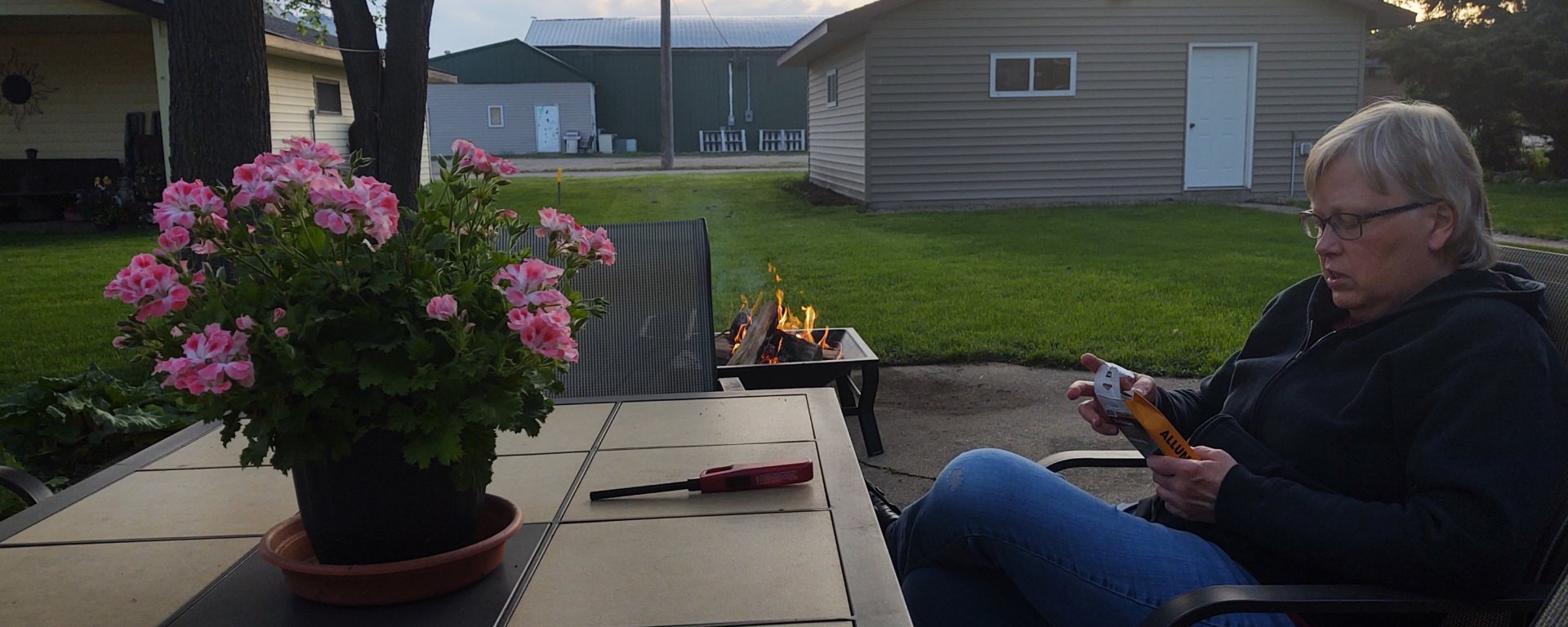 The other day we had heavy rain and hail and our simple patio was a mess with broken tree branches and leaves from the wind and hail. The next day the weather was absolutely perfect, temps in the 70’s and no wind. We grilled hamburgers and sat outside and ate and enjoyed the evening on our patio. Roxie loves to play with fire and I am not allowed to touch the firepit anymore. A few years ago I created an inferno in our backyard firepit and my wife wasn’t too happy with me and I was told to never start a fire again. I will admit, she does a much better job than me at starting fires in the firepit. Anyways, we had a really nice evening sitting on our patio enjoying our little fire.