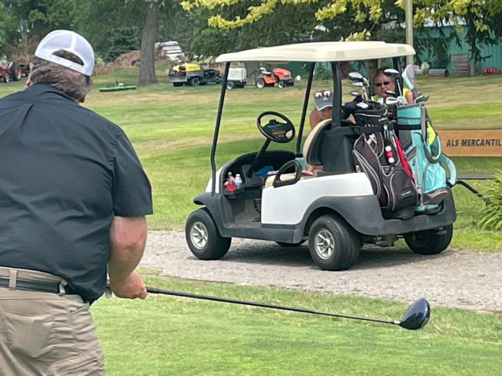 Monday I spent the day with friends on the Dawson Golf Course. It was a cool day and that’s the way I like it. The KLQP golf team consisted of me, Kris Kuechenmeister, Dee Dee Schommer and my high school classmate Tom Bornhorst. There are a lot of golf tournaments this year and we believe it’s important to support these events. JMHS has prizes for best golf pictures, so we took a number of creative golf poses and really had fun doing that. Plus, we golfed really well and had some good laughs.