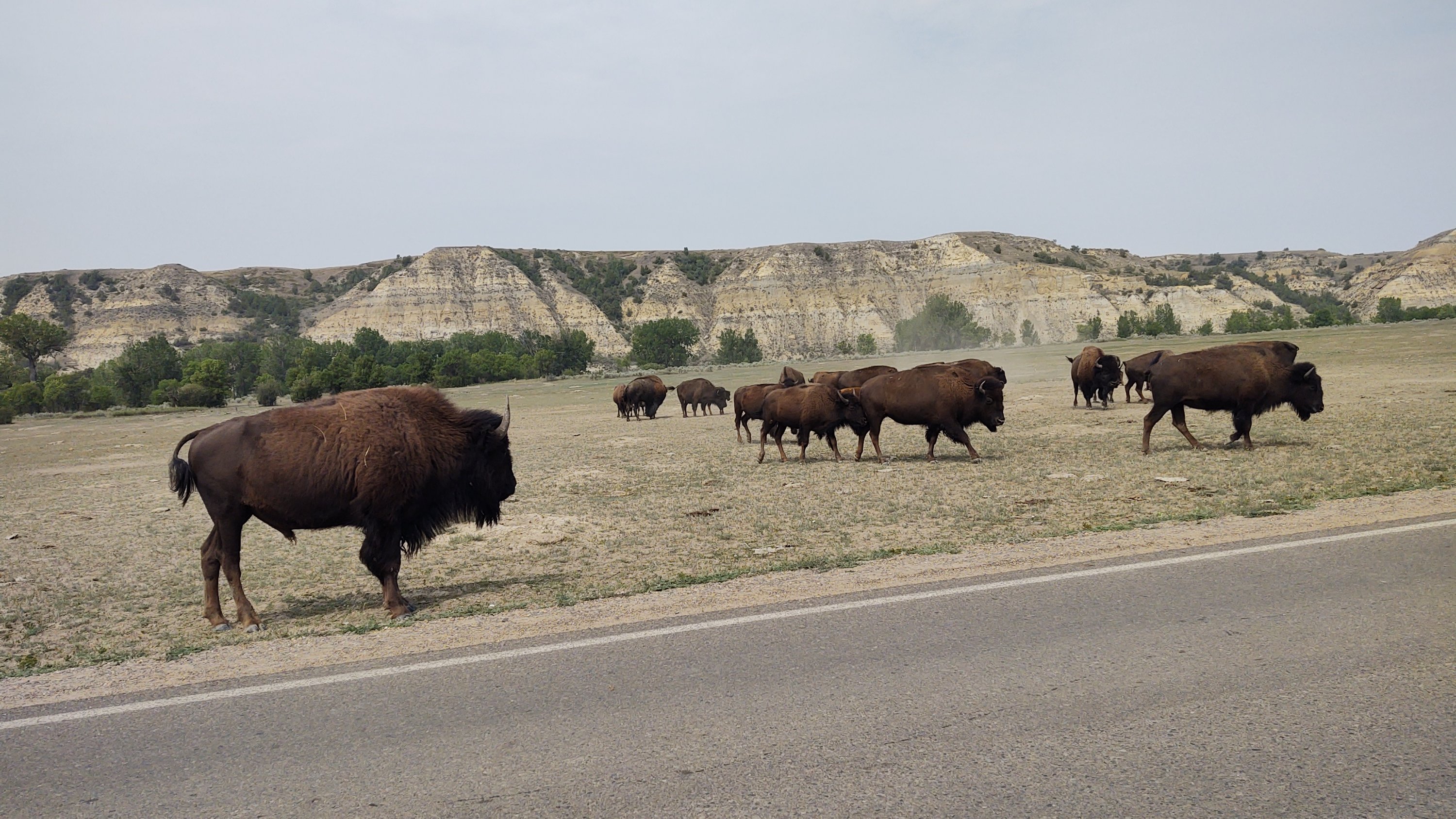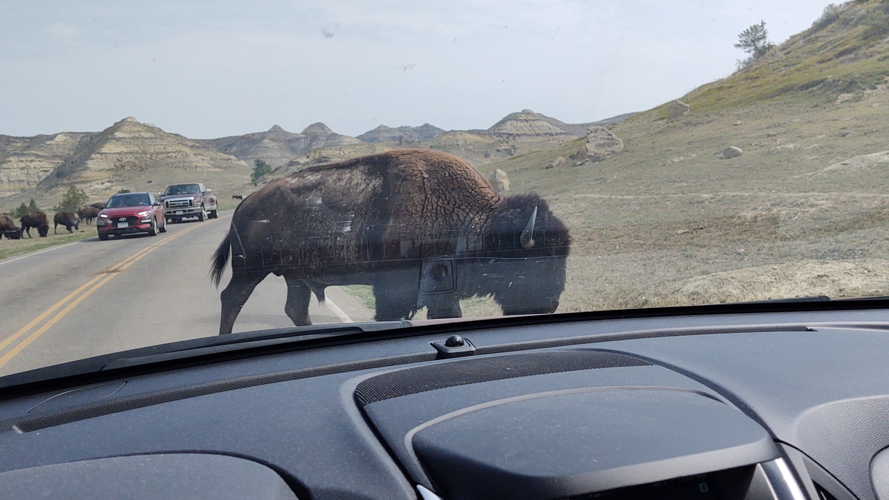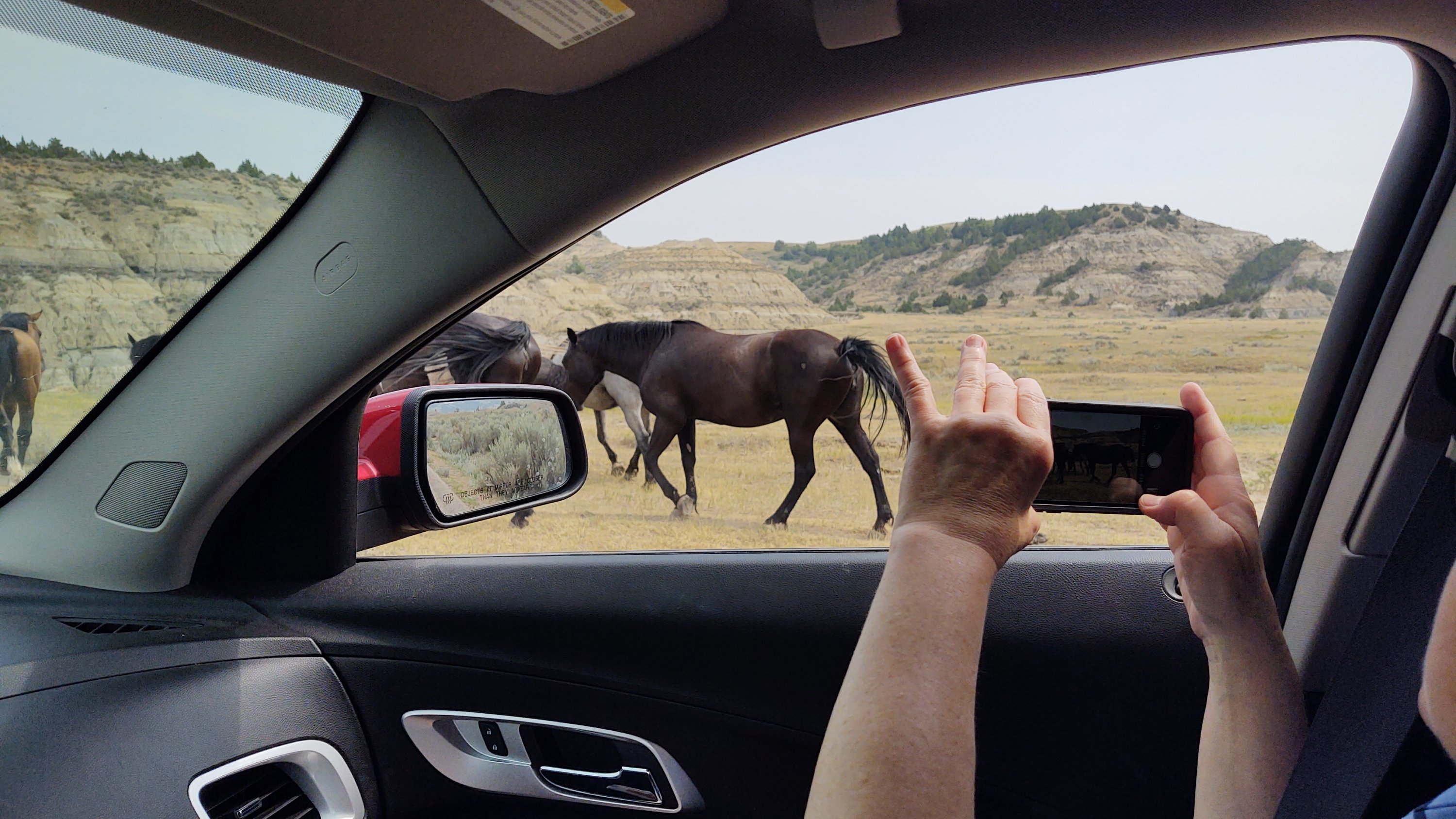 Watching wild horses run along side your car and having a two thousand pound Bison bull almost rub up against your vehicle and stare you down was a major rush for me and Roxie on our vacation. We experienced this in the Theodore Roosevelt National Park in the Badlands of North Dakota