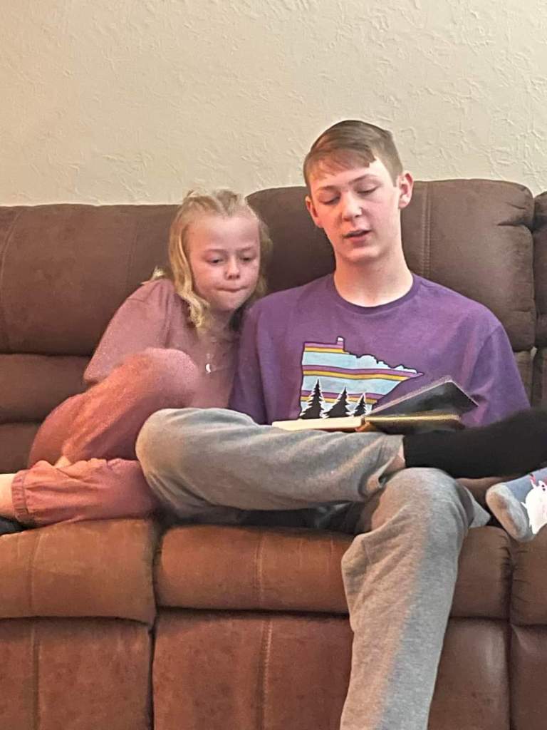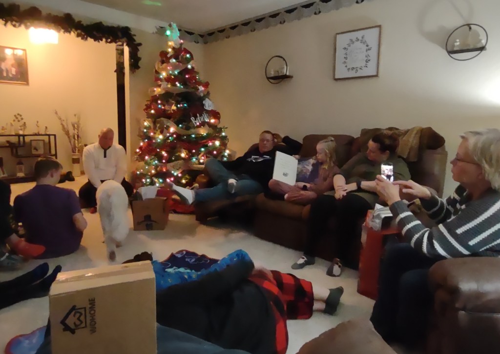 At Brandon and Katie’s home, Brandon prepared a large prime rib and two beer can chickens. We said the table prayer and enjoyed a really nice Christmas dinner. After dinner we all gathered in the living room and the grandkids took turns reading Christmas stories and Adelyn read the Christmas story from the Bible. That is a Raymo family tradition to read the story of Jesus’s birth before we open presents. It’s a special time for our family. I always think of hearing my Grandpa Raymo read the Christmas story when I was very young, that’s a great memory.