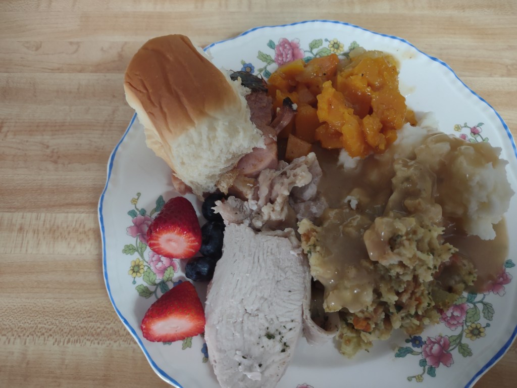 As I was dishing up my Thanksgiving meal I covered most of my plate with the squash/apple bake my wife makes. That is my go to food at Thanksgiving.