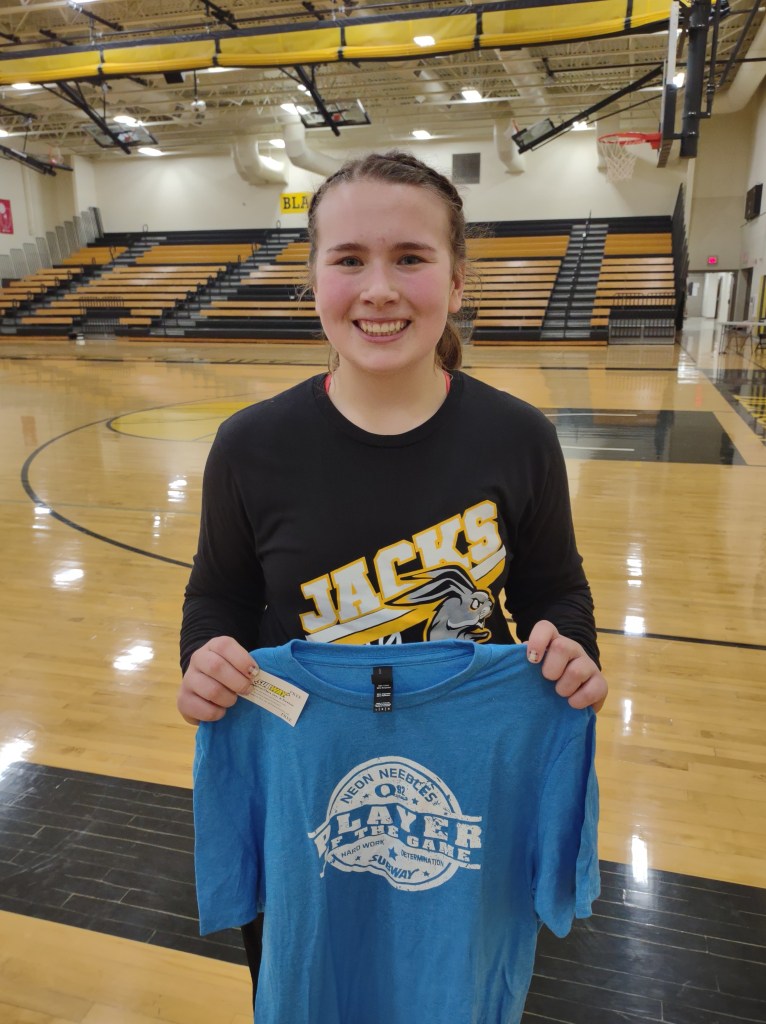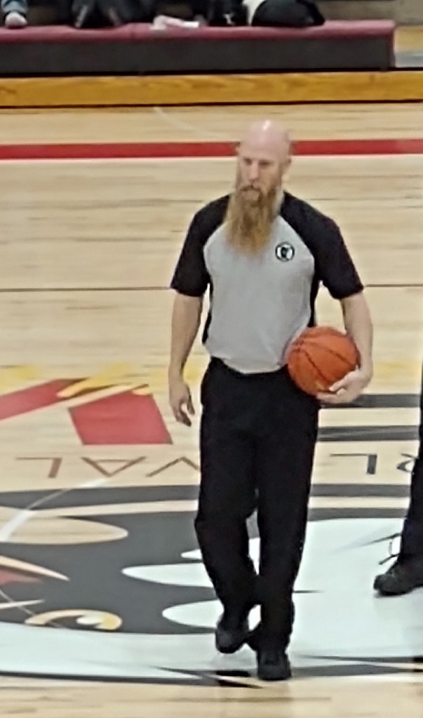 Thursday Bart and I were at LQPV for the girls game with RTR. Both teams have winning records and we were looking for a good game. First thing I noticed was a referee, his name is Clint Shiller. He is known for his long ZZ Top type beard. He also umps a lot of baseball games in the summer. Earlier in the week Clint had sent a Tweet to me jokingly asking when was he going to get a Player of the Game t-shirt? So Thursday night I decided to snap a few pictures of him. I posted them on my social media sites. Seriously, referees and score table workers don’t get enough recognition for what they do. I wanted to recognize him.