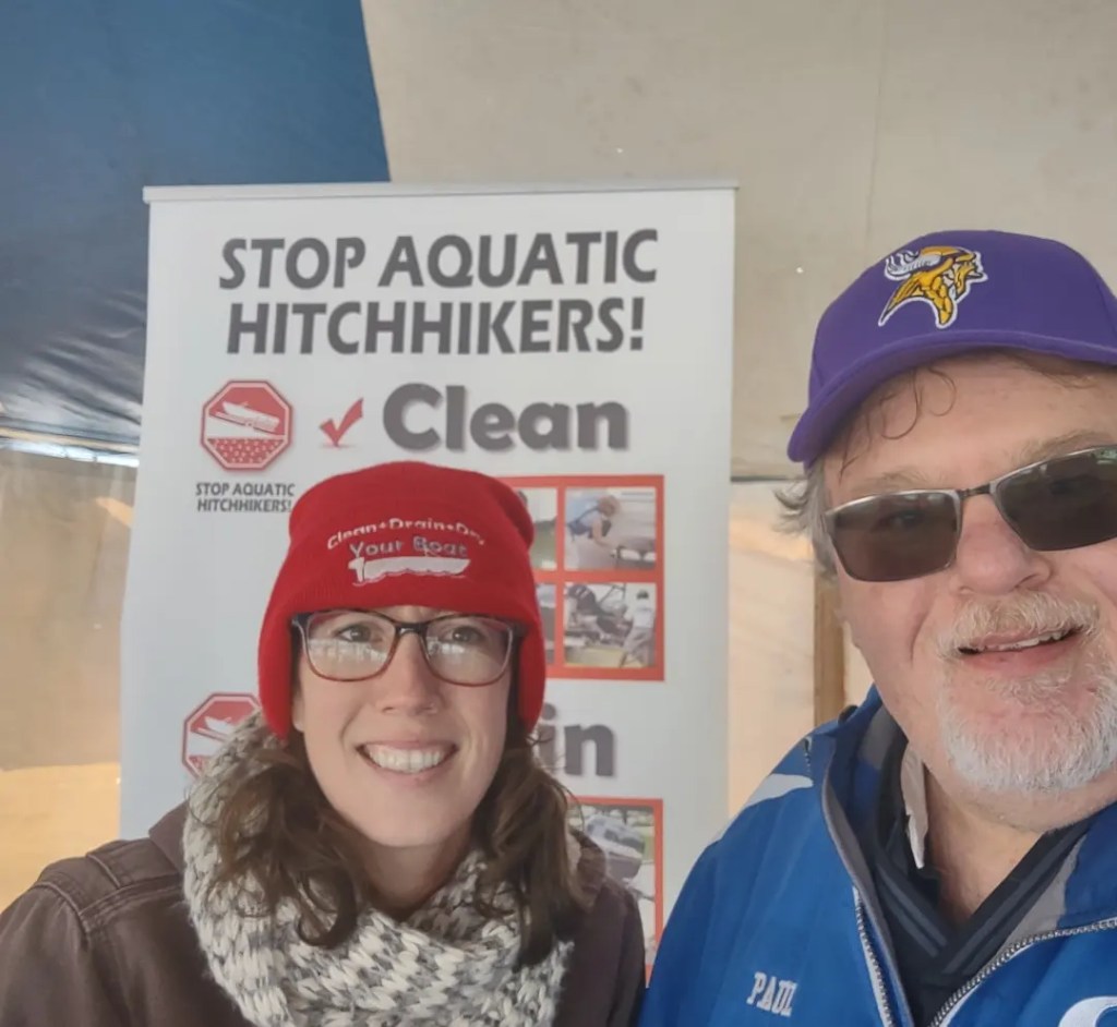 I set up my radio broadcasting equipment in the weigh in fish house. Dave Verhelst and Casey Namkin who basically run the tournament joined me on the air a number of times from inside the fish house. We had some good laughs. During one of the broadcasts I accidentally spilled my Diet Mountain Dew on the couch. Dave and Casey teased me quite a bit while Ryan Schmitt quickly and desperately was cleaning it up. It made for good radio. Evan Krause was sitting at the table with his lap top keeping the website current while the fish were coming in to be weighed and measured. Saturday Evans fiancé was with him and he was wondering if I could broadcast his wedding coming up in August. I told him I could and it would be a 1st for KLQP.