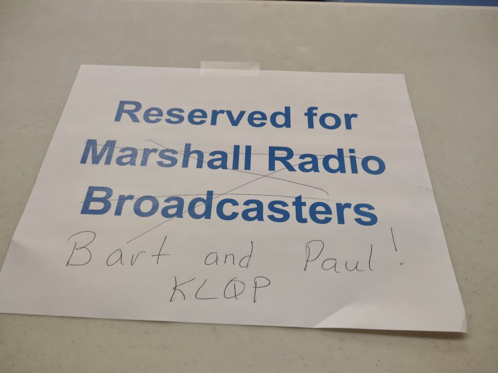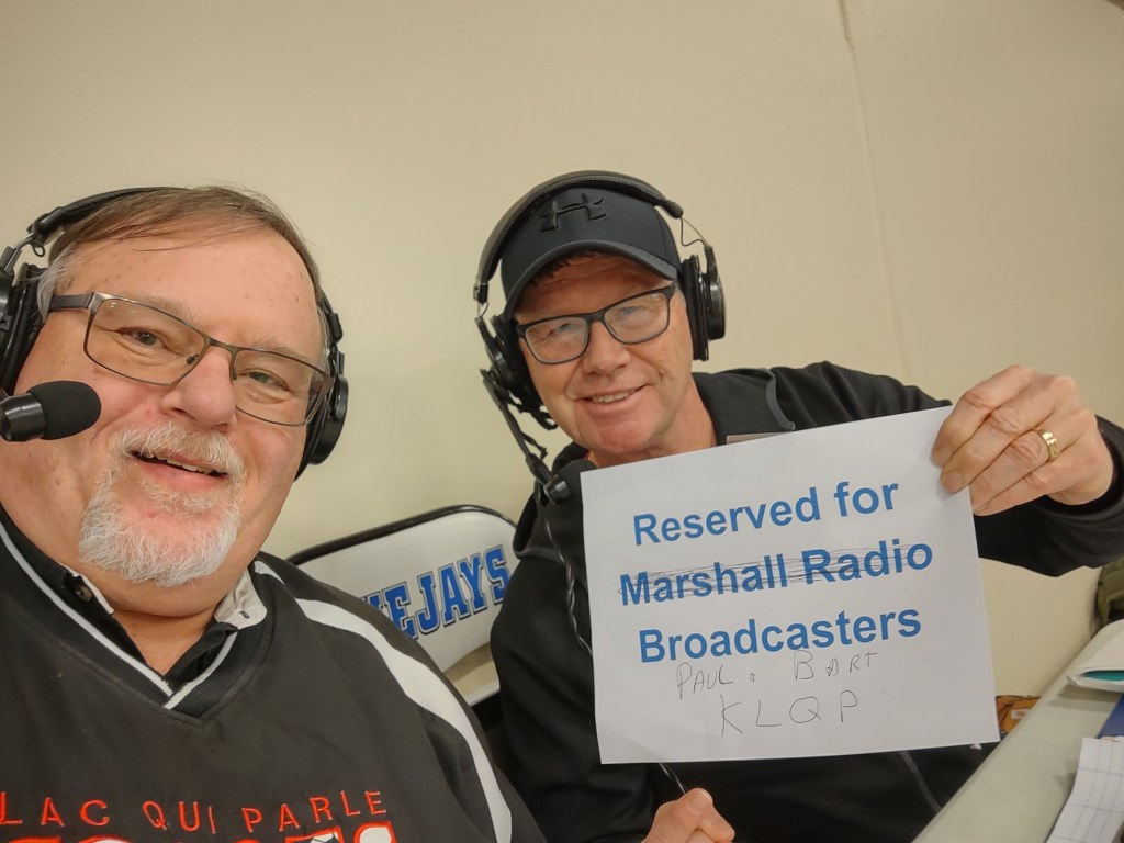 Thursday evening Bart Hill and I traveled to Prinsburg for a important boys basketball game with LQPV and Central Minnesota Christian. Bart and I didn’t get the word that the C squad game had been cancelled earlier that afternoon, so when we arrived at the gym about 5pm we had the place to ourselves. When we went to the press box area, there were two signs that said “Reserved for Marshall radio.” I had to laugh, because I knew Marshall radio wasn’t coming. The AD at CMC must have thought when I let him know I was coming to broadcast the game that I was from Marshall radio. The fans of Central Minnesota Christian are the best. I had three people greet me while I walked up to the press box and shook my hand to welcome me to CMC and thank me for coming