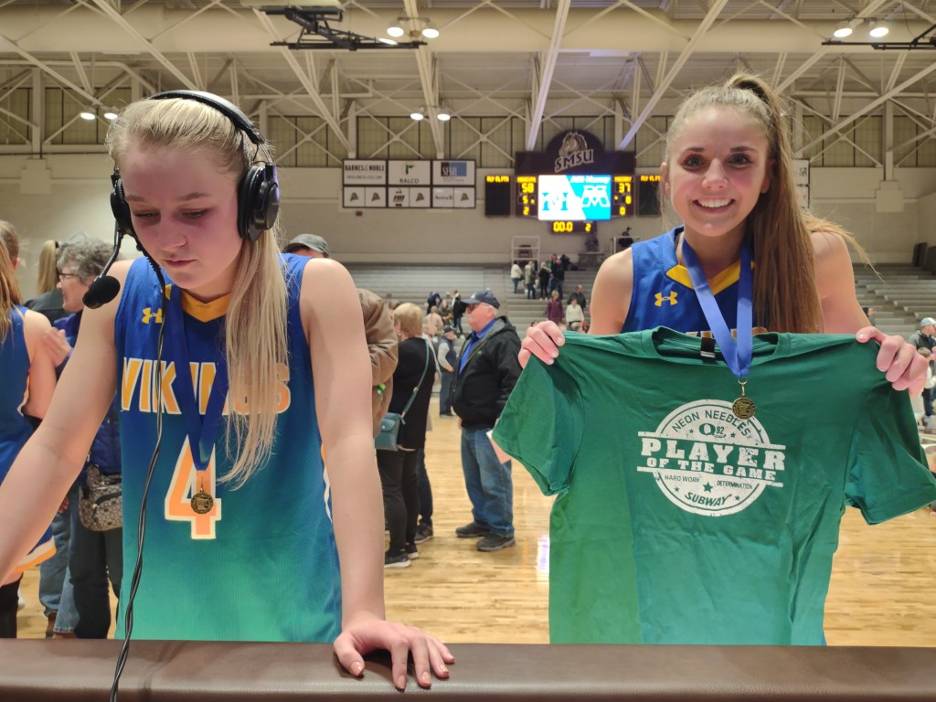 Earlier that night the Minneota girls punched their way to the state tournament for the 5th year in a row. I know the coaches, players and parents pretty well after covering them year after year. It’s a great school and community. The RA Facility is like a home court for the Vikings and I am really looking forward to covering them this week at Williams Arena.