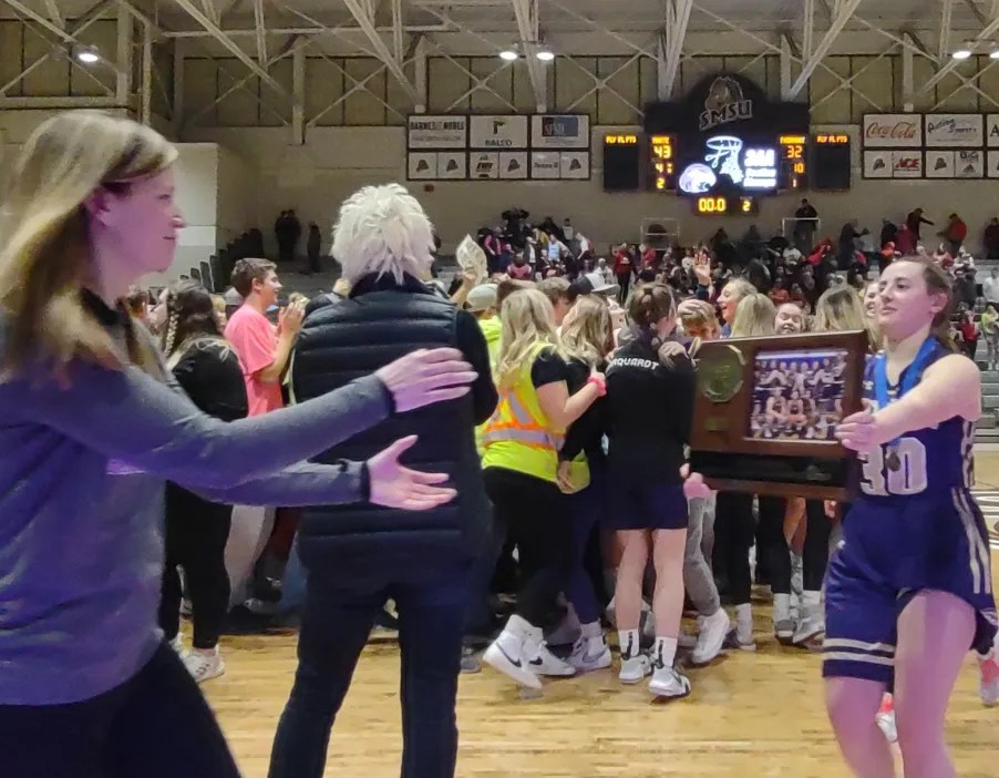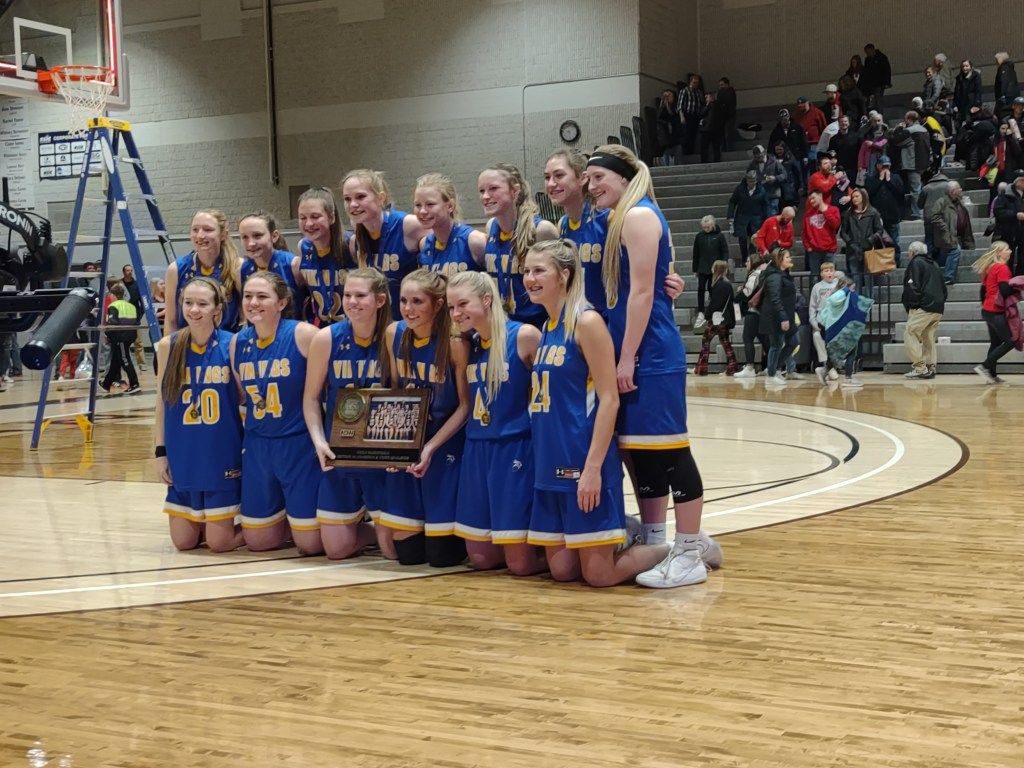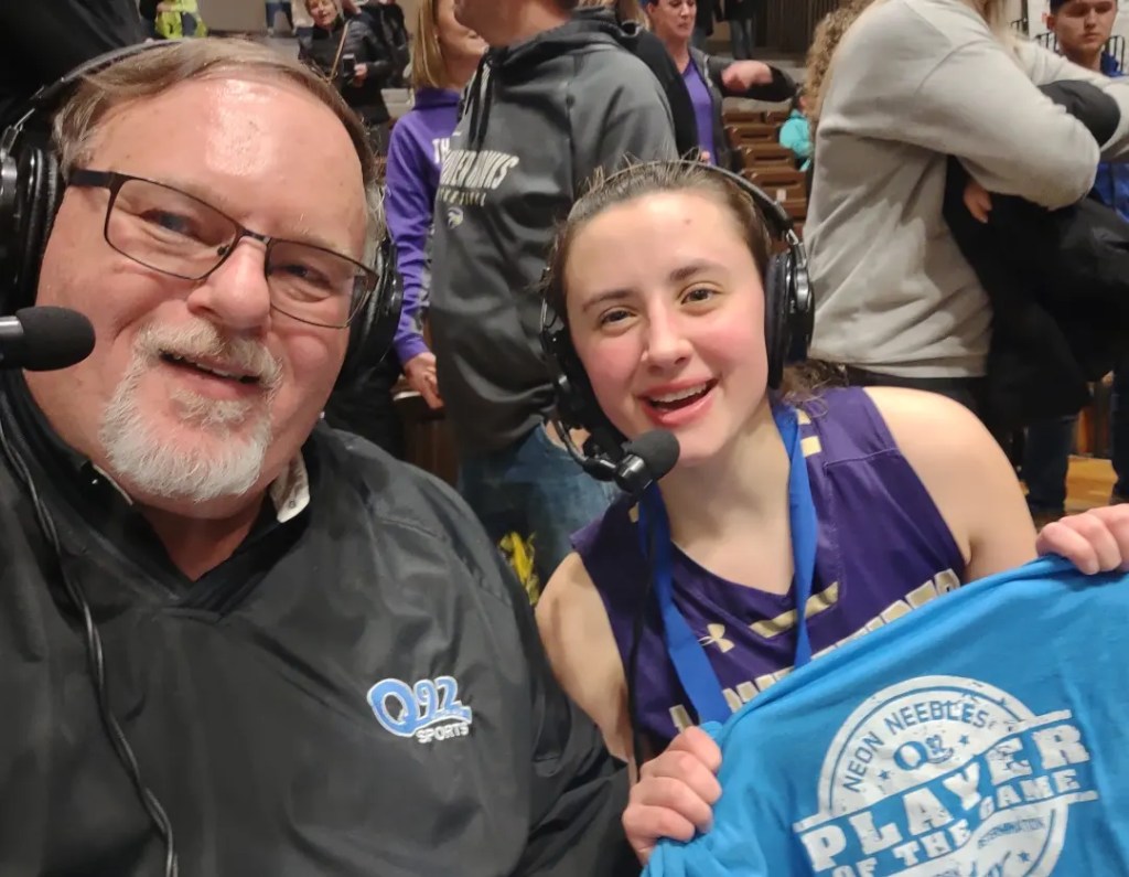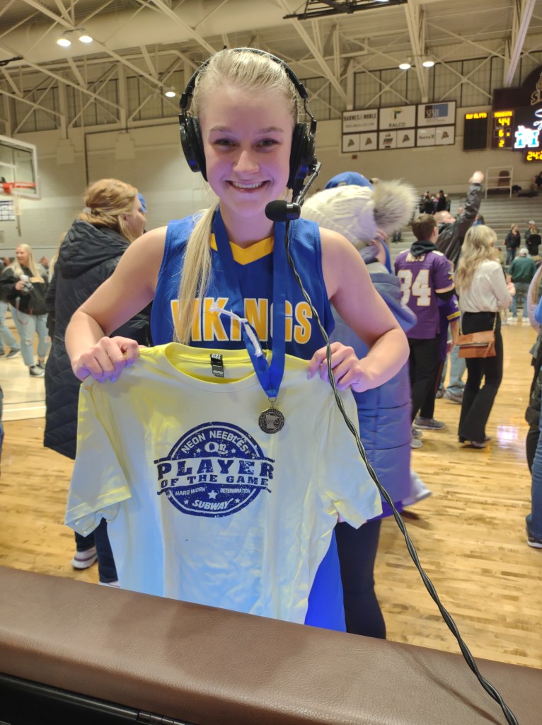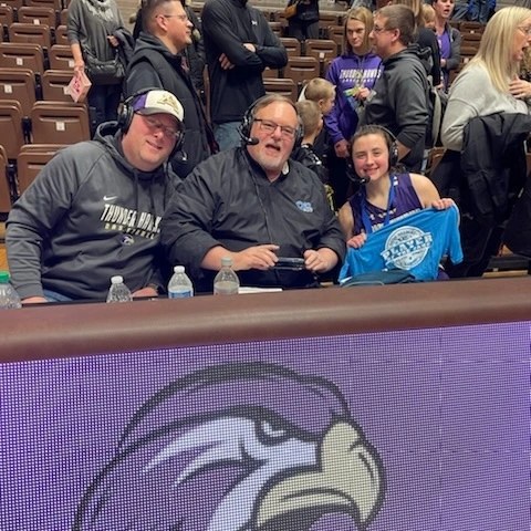 One of my favorite moments at the RA Facility was broadcasting the Montevideo girls basketball championship game with my son Brandon Friday night. The Thunder Hawks beat Fairmont to go to the state basketball tournament for the first time in school history. Brandon and I sat right next to the Montevideo bench and the Montevideo fans were sitting behind us cheering loudly. It was a great atmosphere! The postgame show was really fun interviewing the coach and some of the girls. They were so happy to be going to state!.