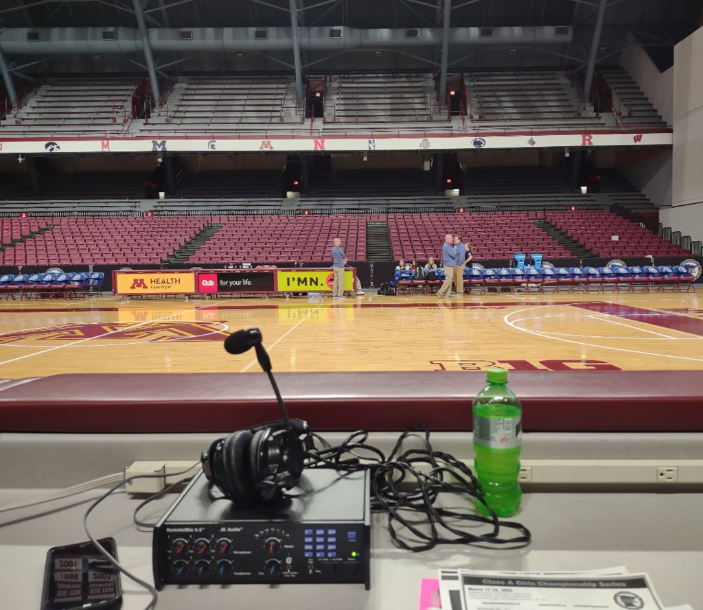 State basketball at Williams Arena in March is an amazing time. Thanks to the Minneota Vikings girls’ basketball team I’ve been lucky enough to experience broadcasting state basketball in the cities for many years. Last year we were at Target Center in downtown Minneapolis, this year we were back at Williams Arena on the campus of the University of Minnesota. I much prefer Williams Arena over Target Center for state basketball.