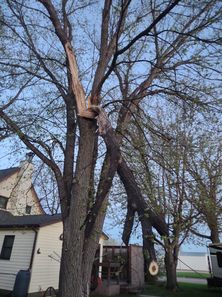 I took a drive around the countryside and was shocked to see how much damage was done to farm sites from the wind storm on Thursday May 12th. I drove from Madison to Appleton on Monday and took the back roads. The devastation was evident with debris scattered in the fields everywhere. When something like this happens it really puts a stop to your normal routine. I just had a big branch fall in my backyard and had some water in my basement which is minor compared to some friends of mine. Some farm sites are a total loss. It is amazing to me that nobody was injured in our area during the storm.