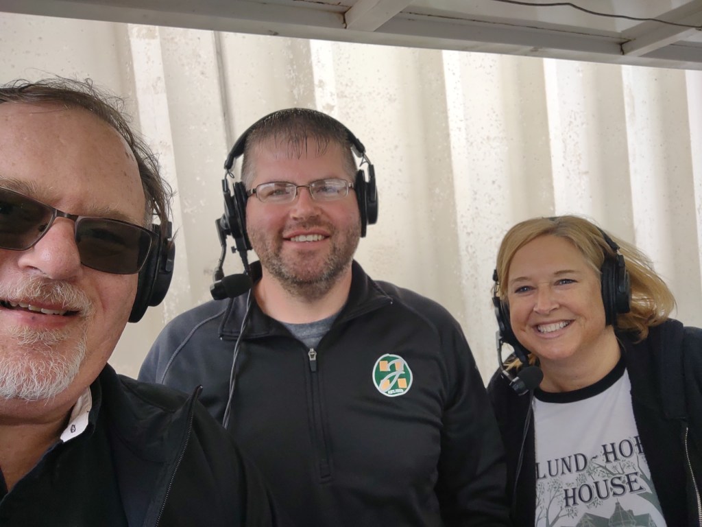 I was over in Dawson on Thursday broadcasting the Blackjacks and Eagles softball game. LQPV came into the game 16 wins and two losses. The Blackjacks had 2 wins so far this year. Both games were close with the Eagles winning both but I was proud of how the Dawson/Boyd girls played the Eagles. I had some excitement in the press box. Scotty Ireland was doing the PA next to me and we had wasps flying around. I hate wasps and bees! Scotty found a very old can of wasp spray laying on the floor and it still worked. He sprayed the heck out of the wasps and I think he killed every one. We had a good laugh, but I was pretty nervous about getting stung. Makaylee Wente a Blackjack softball player was injured and on crutches, she was playing the music between innings from her cell phone sitting on the bench! There was a big speaker sitting on the roof of the press box blaring out some great songs. During the game I kept giving her the thumbs up because I loved the tunes she was playing.