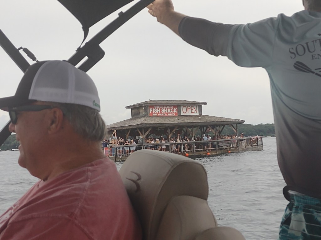 My brother Greg brought his pontoon so we spent the afternoons on the lake. The lake was full of all kinds of boats. We anchored in a large bay with hundreds of other boats. I love people watching and I was in the right place for that. Young and old were having so much fun. Lots of families enjoying time on the lake. My nephews like country music, so we were playing that loudly on our pontoon. We needed to rest in the evenings, our age is starting to show. It was a great place to host our Raymo Cup.
