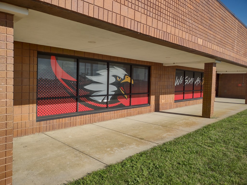 As I was walking from the parking lot to the Lac qui Parle Valley main entrance Tuesday for the volleyball match, I noticed the doors and windows were all covered in the new LQPV logo. It looked amazing! I thought to myself this is going to be a great night. And it was!