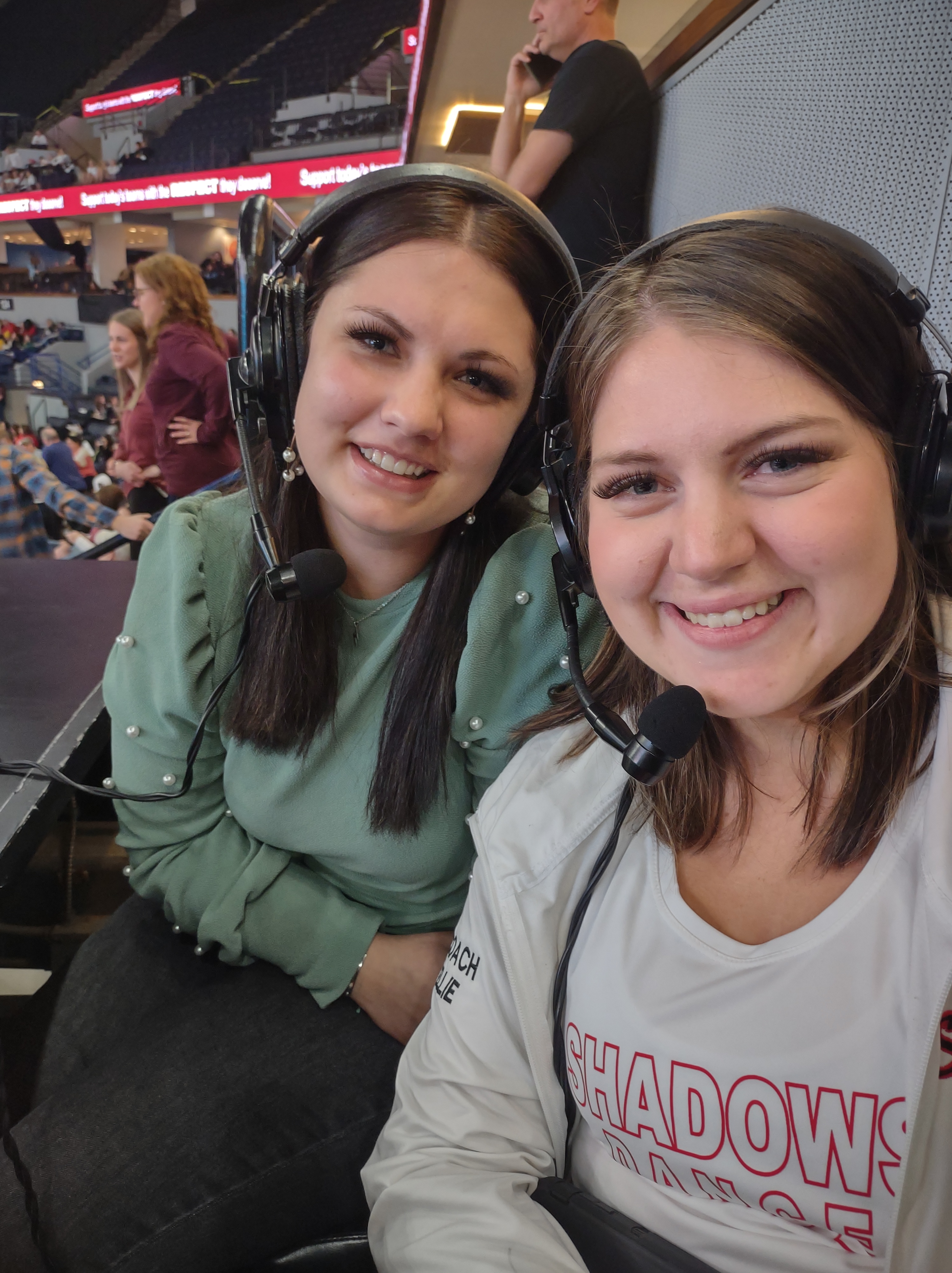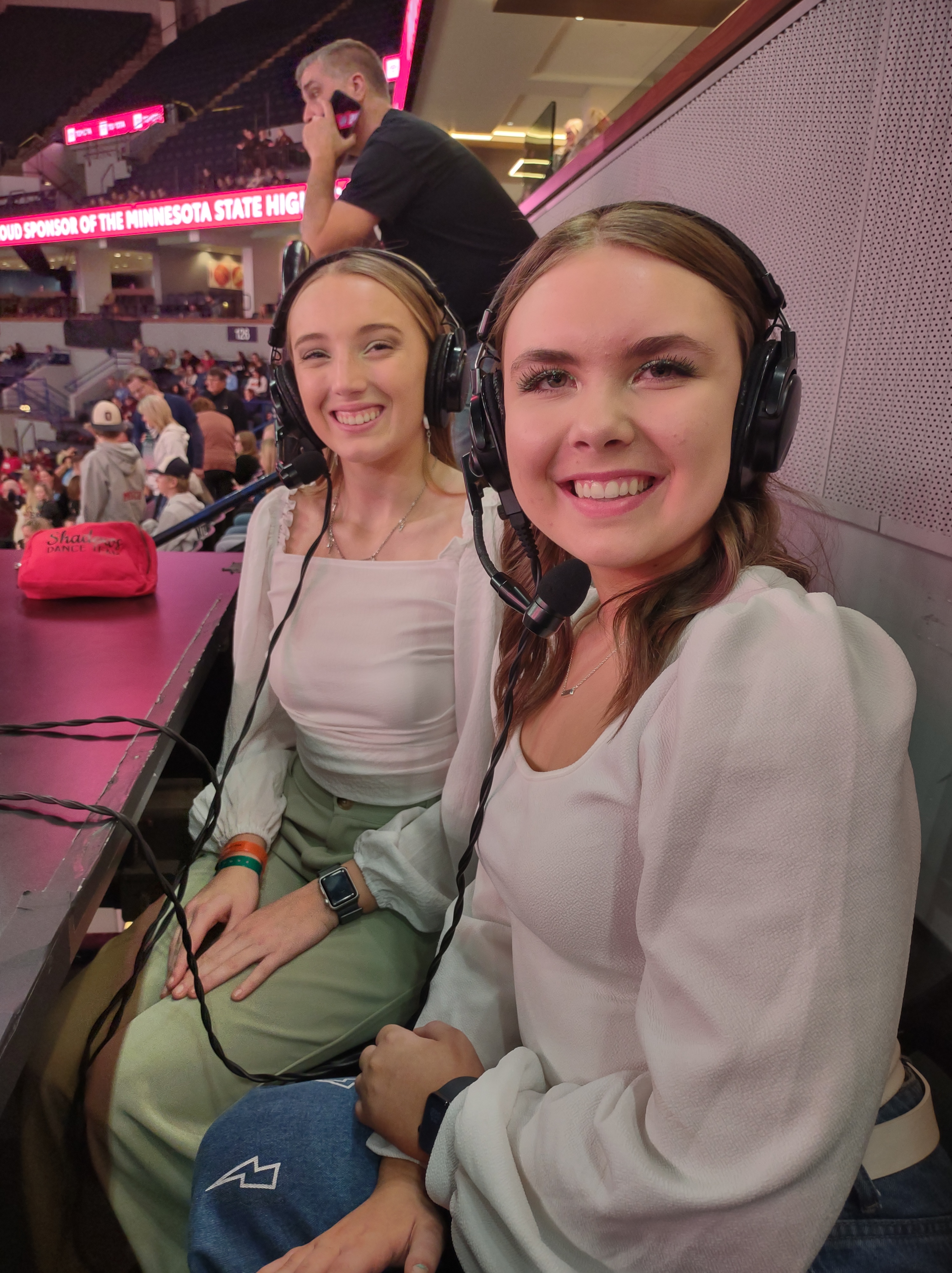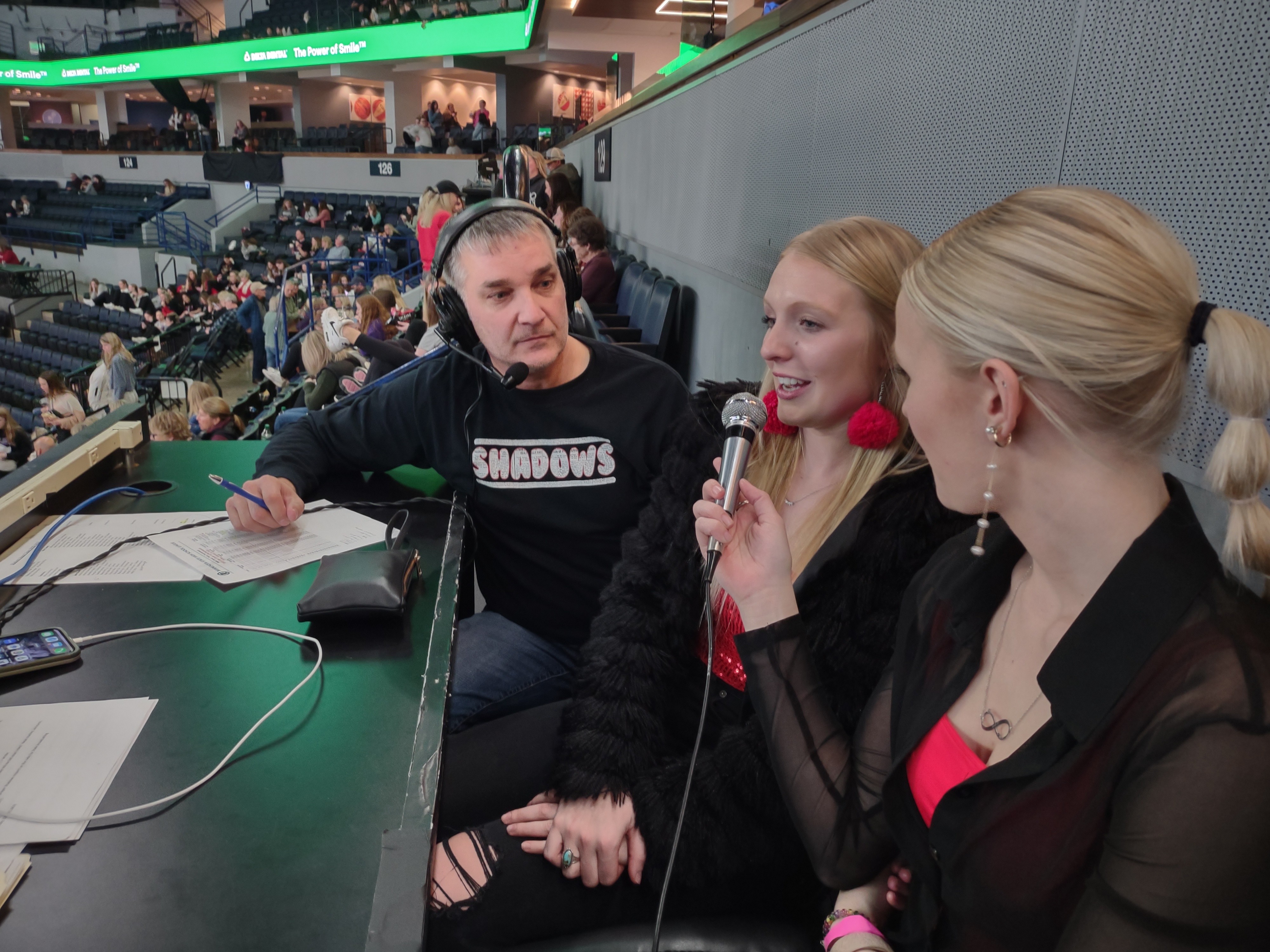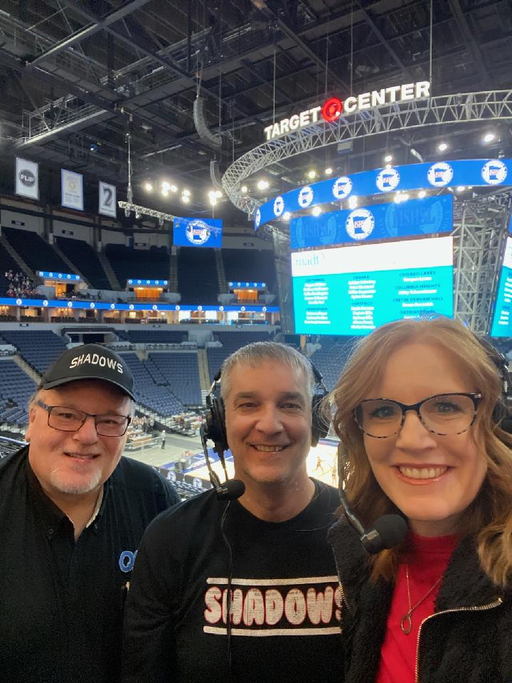 We had so many guests during the two day tournament. All of them were eager to come to our radio booth in Section 130. The coaches, alumni, dancers, managers, parents make for a great broadcast from Target Center. I was really impressed with the students that came from LQPV and Dawson-Boyd to cheer on the Shadows, I saw girl basketball players cheering their friends on with lots of passion. It was great. The parents go above and beyond supporting their teams at state. The lower bowl at Target Center is completing full of fans. While watching AA and AAA dance, Ken and I were listening to Team United wrestling on our phones and cheering them on from Target Center. We were happy when they clinched a match to go to state.