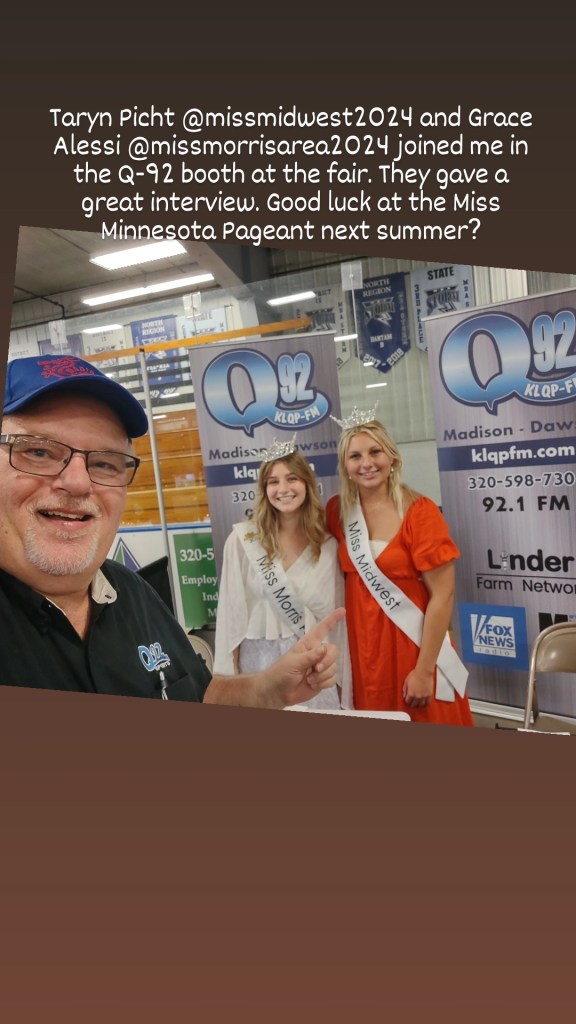 Each year I set up the KLQP radio booth at Yellow Medicine in Canby, Chippewa in Montevideo, Stevens in Morris, Swift in Appleton and the last fair Lac qui Parle in Madison. So my summer is spent at county fairs and baseball fields. I like so many things about working the fair booth for KLQP. Number one is visiting with our listeners who stop by to say hi and tell me why they like listening to KLQP. For the most part I know most of the people that I talk to, but sometimes someone I’ve never met before tells me that they listen to Q-92 all the time. They will tell me where they live and why they listen. It makes me feel good about what we do at the radio station
