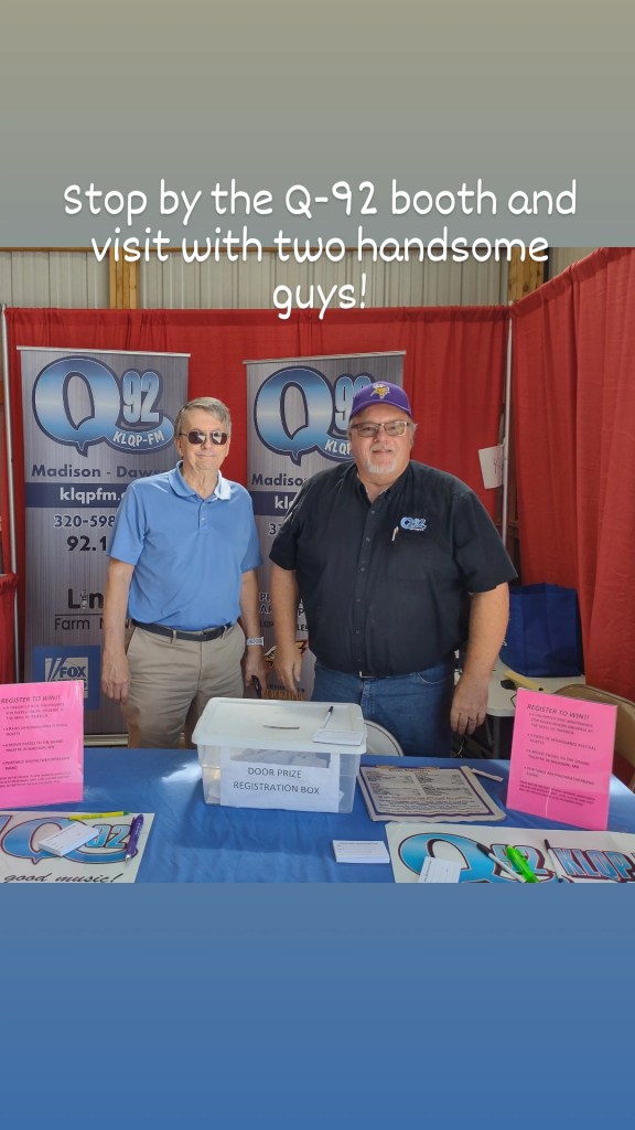 My experience at the LQP County Fair each year is from a work standpoint. I am on the clock working for the radio station which is okay because I still get to enjoy the fair. Wednesday is always set up the booth day. It takes about 20 minutes to set up our Q-92 booth which is always located in the East Commercial Building. We put up two banners, a table and a registration box. Thursday always starts out by broadcasting the Garden Show with Duane Hastad from the Heather Nursery booth. They do a fantastic job decorating their booth outside with mums, trees and flowers. Thursday, I always get to meet some of the food vendors that advertise with us, I look forward to seeing Joe with the Big Cheeseburger stand, my good friend John Dugan from Texas Best BBQ, along with Tammy at the malt stand and Hollie, Lynn and DeeAnn with the wine booth.