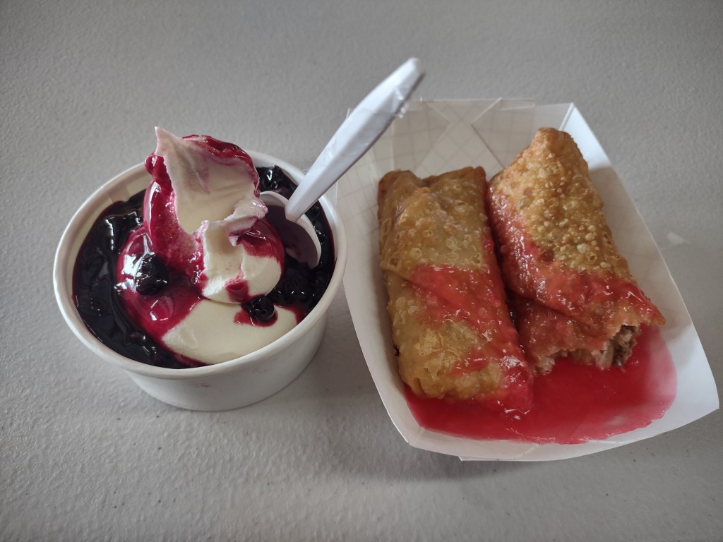 Friday, I only could spend a few hours at the fair, but still got to eat some of my favorite fair food. The beef commercial at the Faith Church stand, beef brisket from Texas Best BBQ, Egg rolls underneath the grandstand and the honeyberry sundae from Lynn just to name a few. I had the football game to go to so I had to leave the fairgrounds around 3pm.