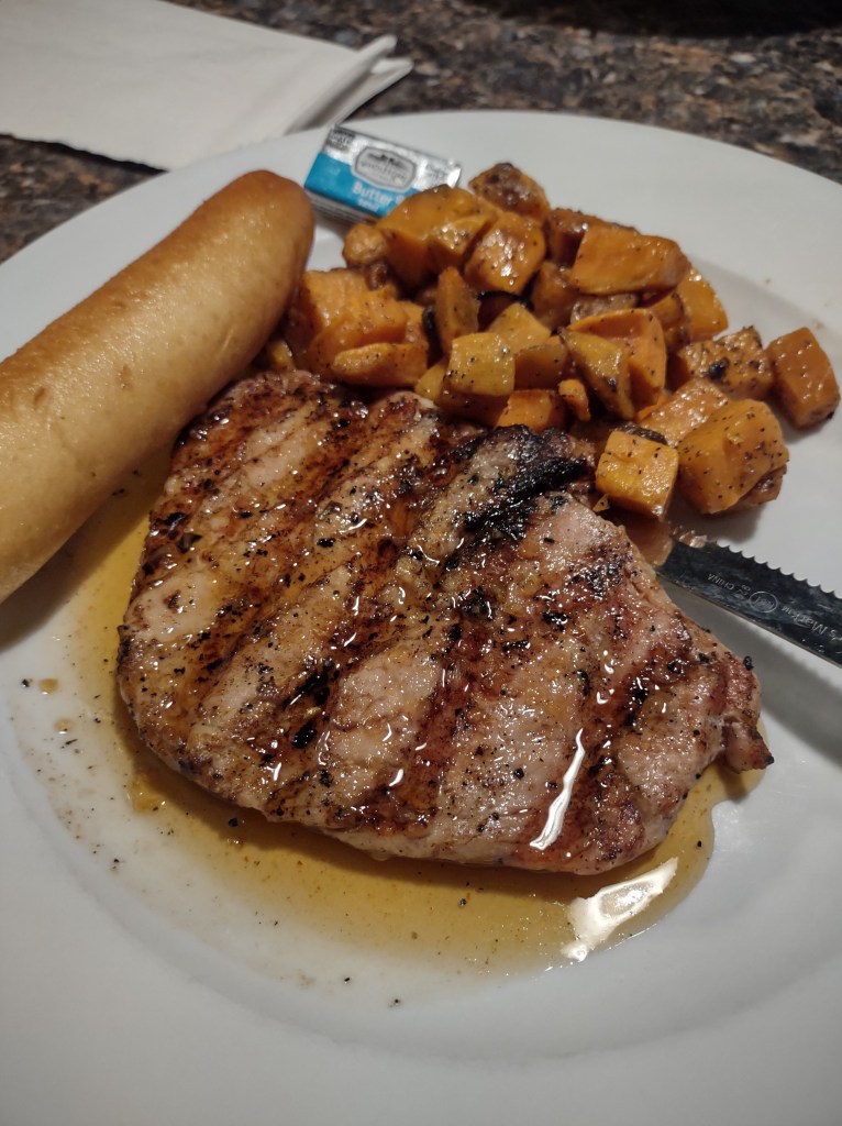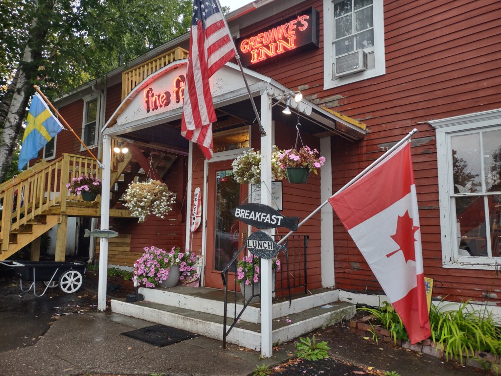 Sunday was my birthday and Roxie said let’s go out to a nice restaurant. So we asked the owner where can I get a good steak? He said the Pier Inn. I was hungry for a good steak. Of course Bayfield is a tourist place and you have to expect to wait at restaurants. So we went to the Pier Inn so I can get my steak and waited one hour till we got a booth. The waitress came over and the first thing she said as she handed us the menu is that we are out of Ribeye steak! You’ve got to be kidding me. Oh well I ordered a boneless pork chop and it was very good. Roxie was sad because I didn’t get my birthday steak. It’s been a great birthday!