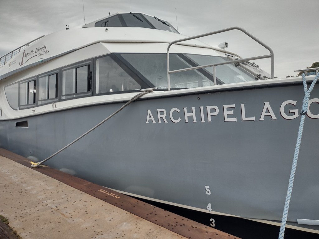 Sunday afternoon we spent three hours on Lake Superior touring the Apostle Islands. We were on a large boat that held 150 people. The captain narrated the whole trip telling us about the history of the 32 islands. He was pretty funny with the jokes he was telling. The islands are beautiful and Lake Superior was pretty calm for most of the trip. Roxie was worried she would get sea sick and I was too. The only negative part of the trip was that it rained most of the time.