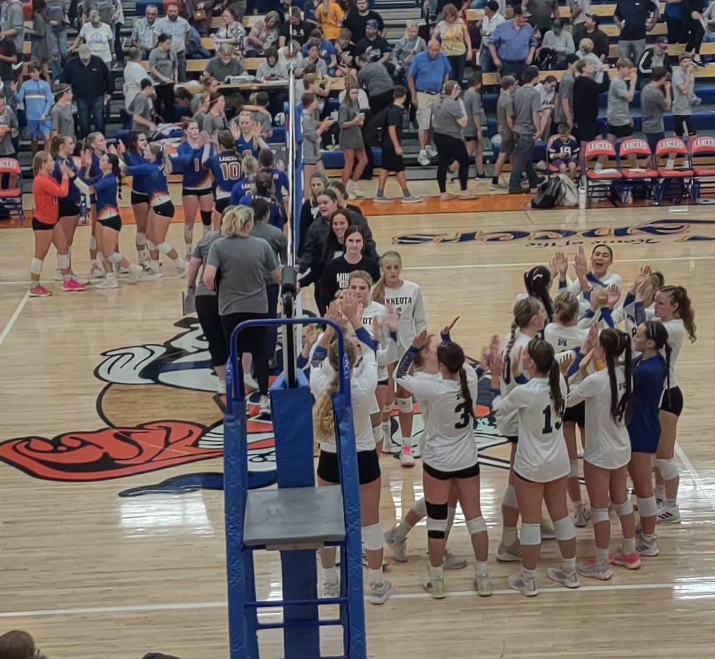 Probably the biggest volleyball match in the state of Minnesota was played in Canby on Thursday. The defending state champions and currently ranked number one in the polls the Minneota Vikings were in Canby to take on the state ranked Lancers! I was so excited driving over to Canby Thursday for this match. I know both coaches well and enjoy visiting with them. Jenai Wright of the Lancers has a very young team, she starts 5 sophomores and a senior. They are a very good team. Minneota Vikings coach Hailey Fruin again has some very talented volleyball players. Canby won the first set and the Vikings won the next three to win the match.