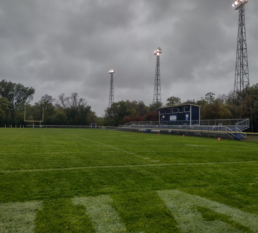 Thursday I traveled to Minneota to broadcast the football game between the Lac qui Parle Valley Eagles and Minneota Vikings. The game was moved up to 6pm because of rain and possible lightning later. But it rained all the way to Minneota and when I arrived at the field the game was already in a lightning delay. I was told it would be a 7pm kickoff. I set up my radio equipment in the press box and visited with Josh from Marshall radio and the Activities Director for Minneota, Patty Myrvik. Then I went and sat in my car and the rain and lightning continued. They postponed the game around 7:30, so I drove to Canby and picked up a PK’s pizza and brought it home to my wife’s delight. I drove back to Marshall Friday afternoon and broadcast the game at SMSU. It was still raining. Marshall received 4 inches of rain.