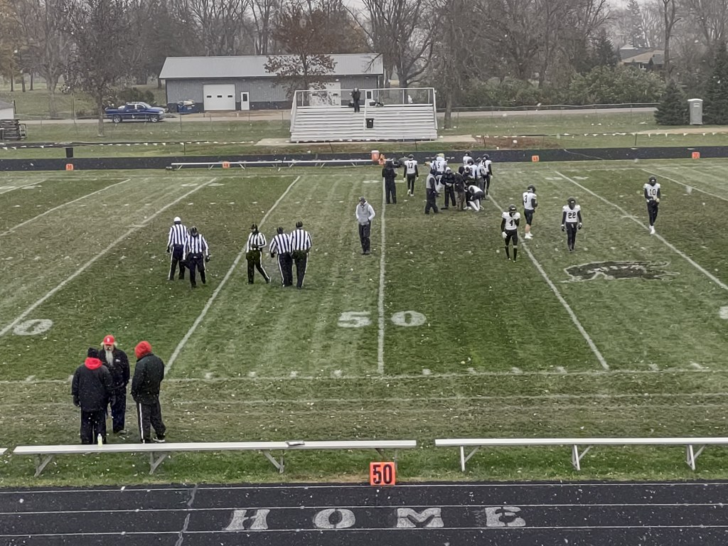 SATURDAY: I did the Coaches Show in the morning, then drove to Olivia to cover more section football. Dawson-Boyd was playing BOLD. Highway 212 opened from Granite Falls to Olivia on Thursday. It had been detoured all summer. It was snowing lightly the whole game and cold out. I was nice and warm and dry in BOLD’s nice press box. The very young Blackjack team lost, but they are going to be really good the next few years. Saturday is for college football and on the way to Olivia I listened to South Dakota State playing South Dakota and on the way home I listened to the Gophers win.