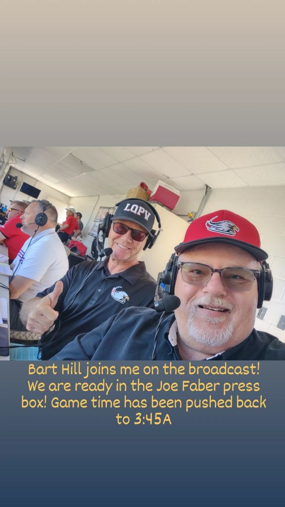 Thursday and Friday was state baseball in St Cloud! LQPV Eagles took on Cherry High School at Joe Faber Field. It was a nice stadium and it was an awesome following of Eagle fans. We had more fans than other schools did. Bart Hill and I broadcasted from a crowded press box. We spent time visiting with John Millea from the Minnesota High School League. He writes Johns Journal and is very well known around the state. I have always enjoyed my visits with John even though they are short sometimes. He is retiring after the next school year and will be greatly missed.