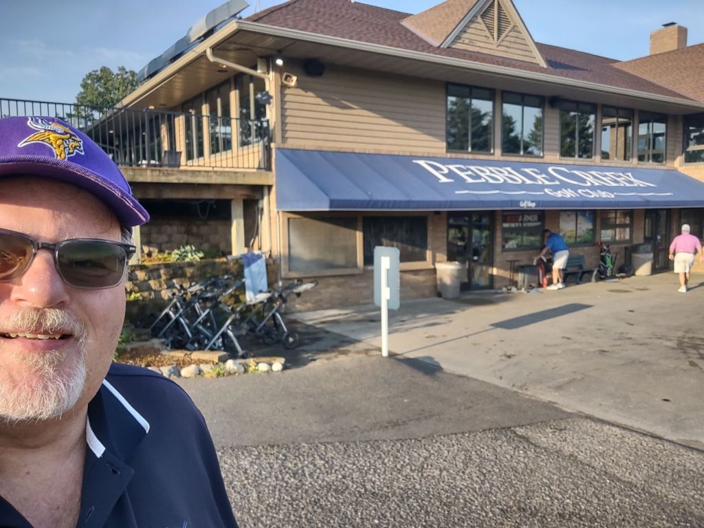 Sunday I walked into the clubhouse the guy working says to me, ” aren’t you the guy that works for a radio station and is here at state golf?” I said Yes, but today I’m golfing. We both laughed. After golfing the course I really have a new appreciation for those high school golfers that compete at Pebble Creek. It’s amazing they can birdie and par each hole consistently. I can’t even come close to that.
