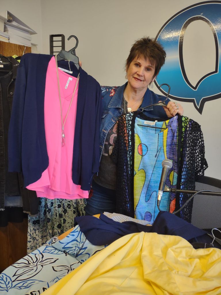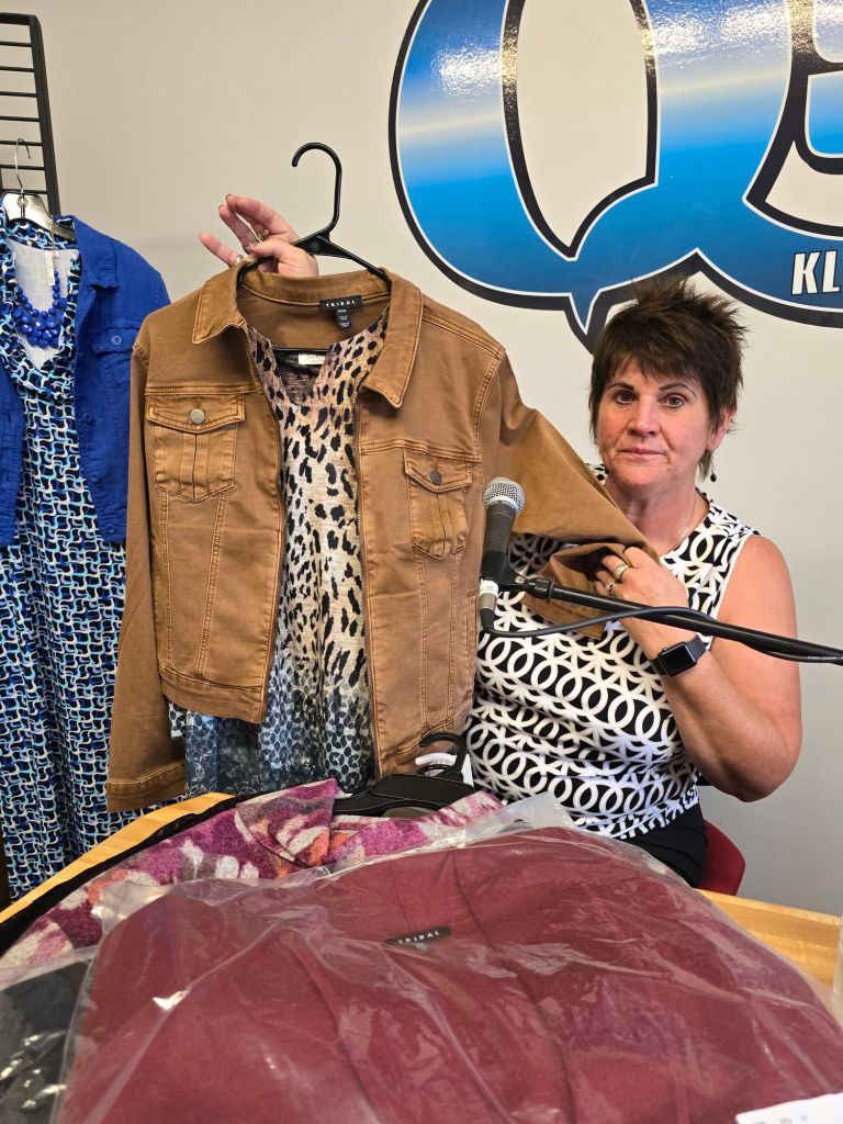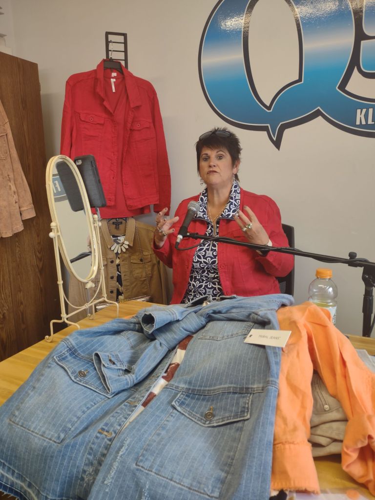 Monica owns a boutique in Dawson and runs the business out of her home. She has become a good friend since I took over hosting Fashionista Fridays from Terry Overlander a number of years ago. Monica and Terry started Fashionista Fridays about 17 years ago. The show is all about fashion. When I came on board I knew nothing about fashion. Monica has made me into a Fashionista!