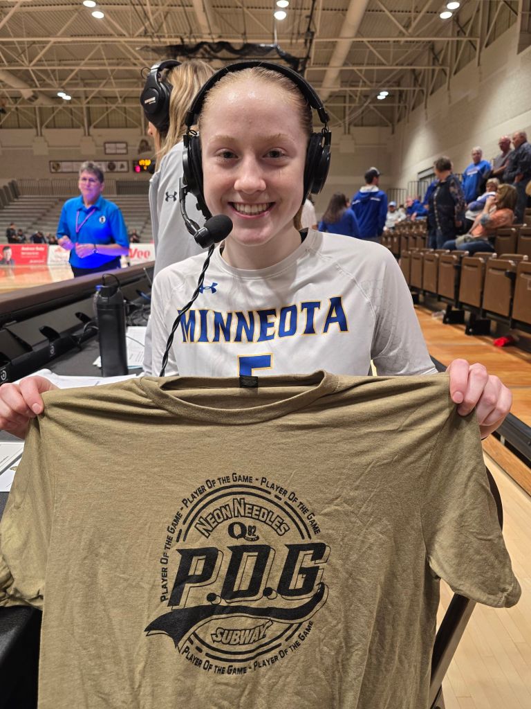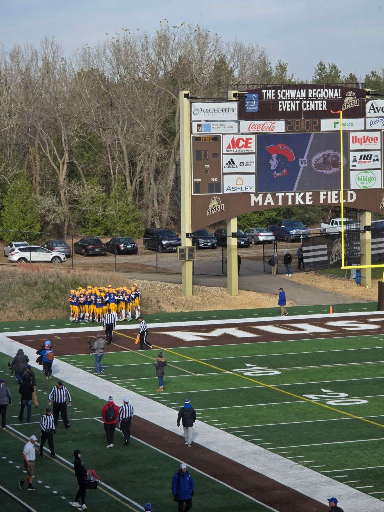 As I get older, it is still fun but I start to run out of steam around Thursday. I just as well rent an apartment in Marshall this time of year instead of driving an hour to Marshall each day. Tuesday I had two section volleyball matches, Thursday back to Marshall for the Section 3A North volleyball match between Canby and Minneota. Then on Friday it was section football at The Schwans Event Center. I finished the week out on Saturday night with the Section 3A volleyball championship.