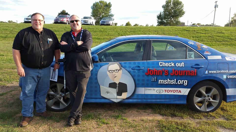 John is a great guy and has announced his retirement when the school year is over. John has had an amazing career. He worked for the Star Tribune for many years covering the Twins and Vikings. He worked with the legendary Sid Hartmann. He knows everyone. John and I are much alike. He covers high school sports and loves his job. He told me Saturday that he has never worked a day in his life.