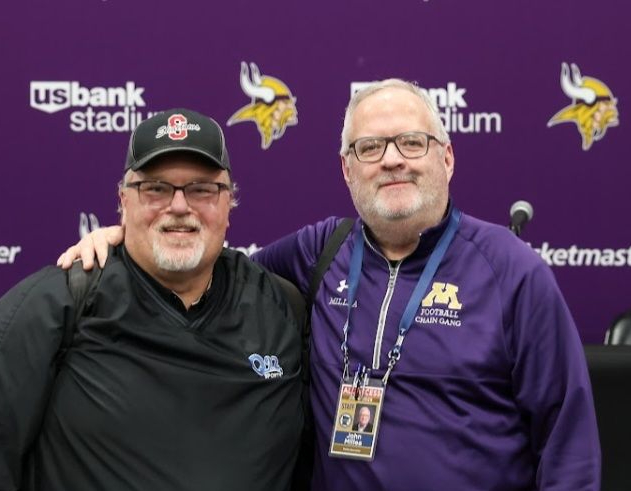 The other media people were leaving as well. I was visiting with Reba and Emma Lipinski from Minneota, they are mother and daughter photographers for Viking sports. The last media person to leave the room was my friend from the Minnesota High School League, John Millea. John writes the popular Johns Journal for the league. We have known each other for years. We meet at state tournaments every year and follow each other on our social media platforms.