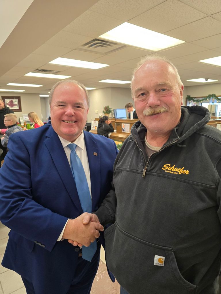 They had an open house for him at the First State Bank Friday afternoon from 1-5. When we walked through the front doors, Greg was inside greeting friends and former colleagues. There was a long line waiting to greet him. Standing in front of us was Tim Waibel from New Ulm. Tim was Greg’s best friend when we lived in New Ulm. The last time they saw each other was in 1970 before our family moved to Madison.
