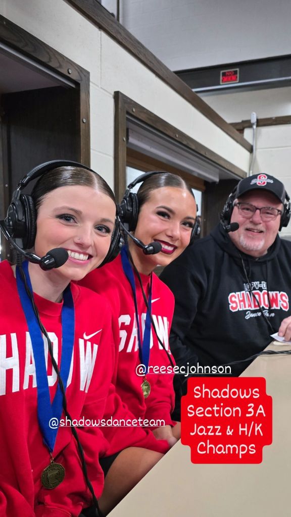 The other strange happening was I got a text from the Shadows’ head coach Carly Wager in the morning telling me she was really sick and wouldn’t be able to make it. I felt so bad for her. She puts so much into running the dance program and on this big day she wouldn’t be able to be there with her team. I have had that happen to me as well, a couple of years ago, I had covid and couldn’t attend state dance for the first time. If covid didn’t kill me, not being there almost did. I was devasted that I couldn’t broadcast the State Dance Tournament.
