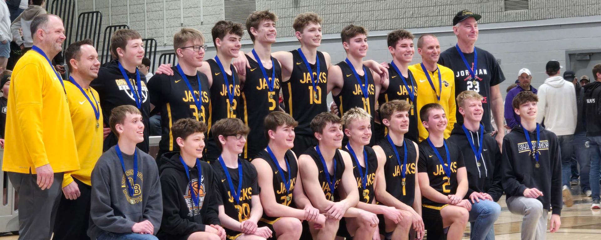 This past Saturday the Dawson-Boyd Blackjack boys basketball team advanced and will play Thursday with the winner going to state. I am so impressed with the Dawson-Boyd fans, they come to support the team in large numbers. It’s so cool to see the whole side of the RA Facility nothing but a sea of Black and Yellow! It’s completely full of screaming Dawson-Boyd fans! The Blackjack moms are pretty cool and having a lot of fun!