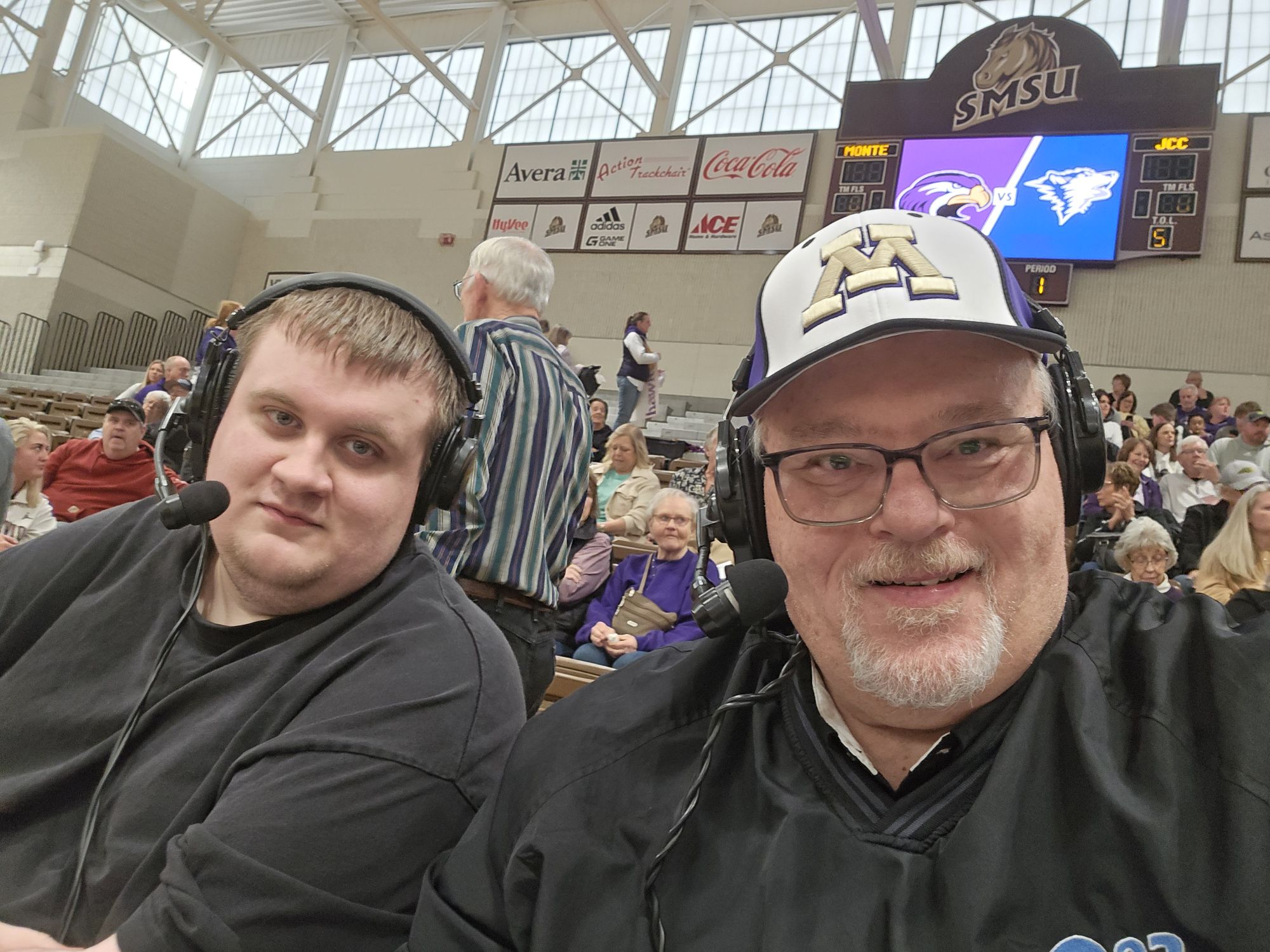 Also, at the table courtside with me is my broadcasting partner Mitchell Syltie. Mitchell knows his stuff and does his homework on each team. He is a great addition to the broadcasts. We sure have fun together.
