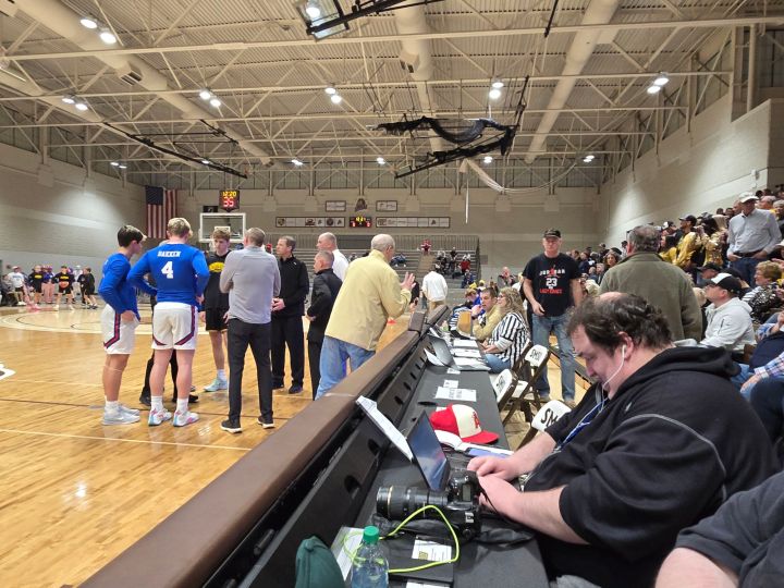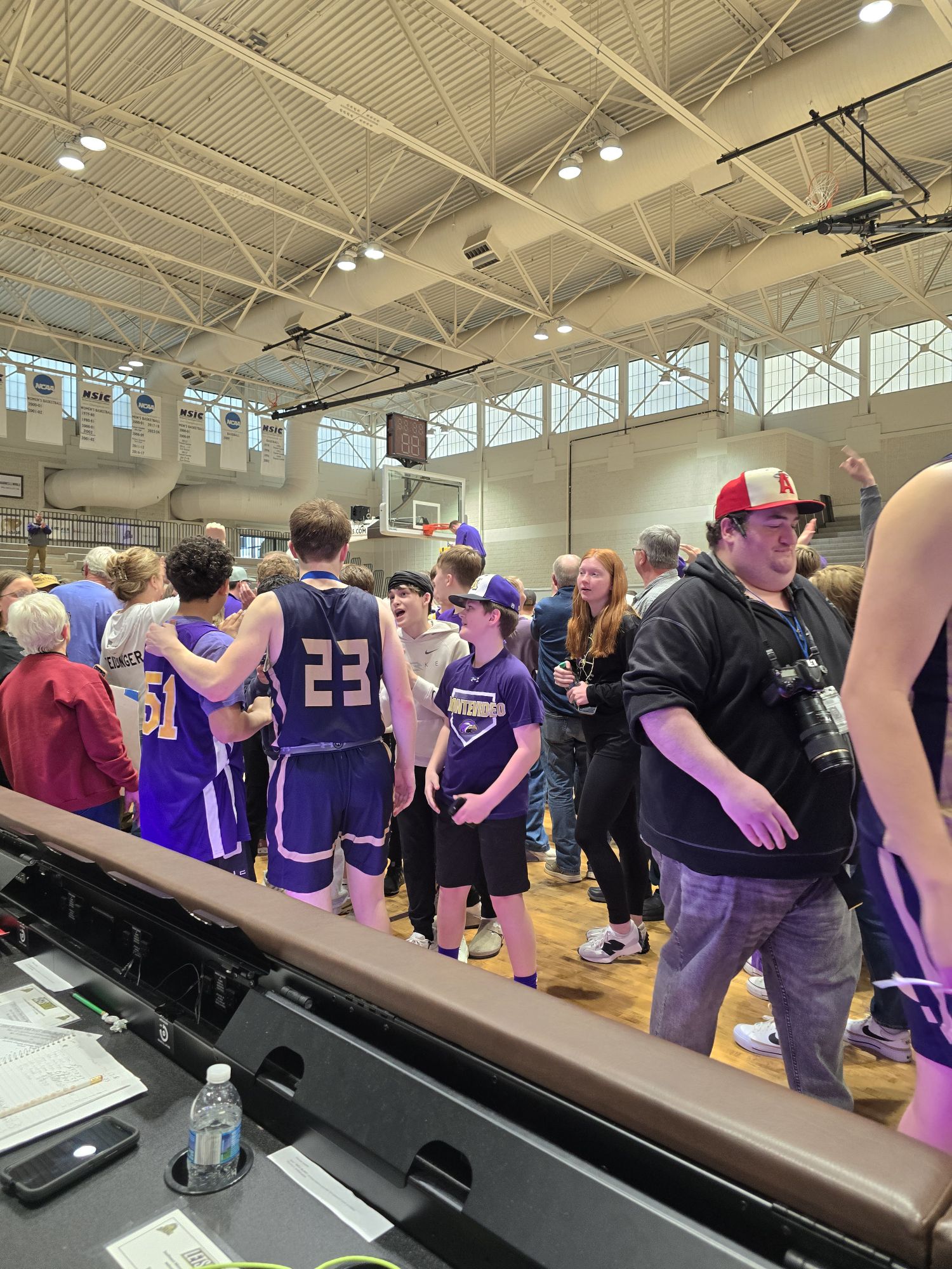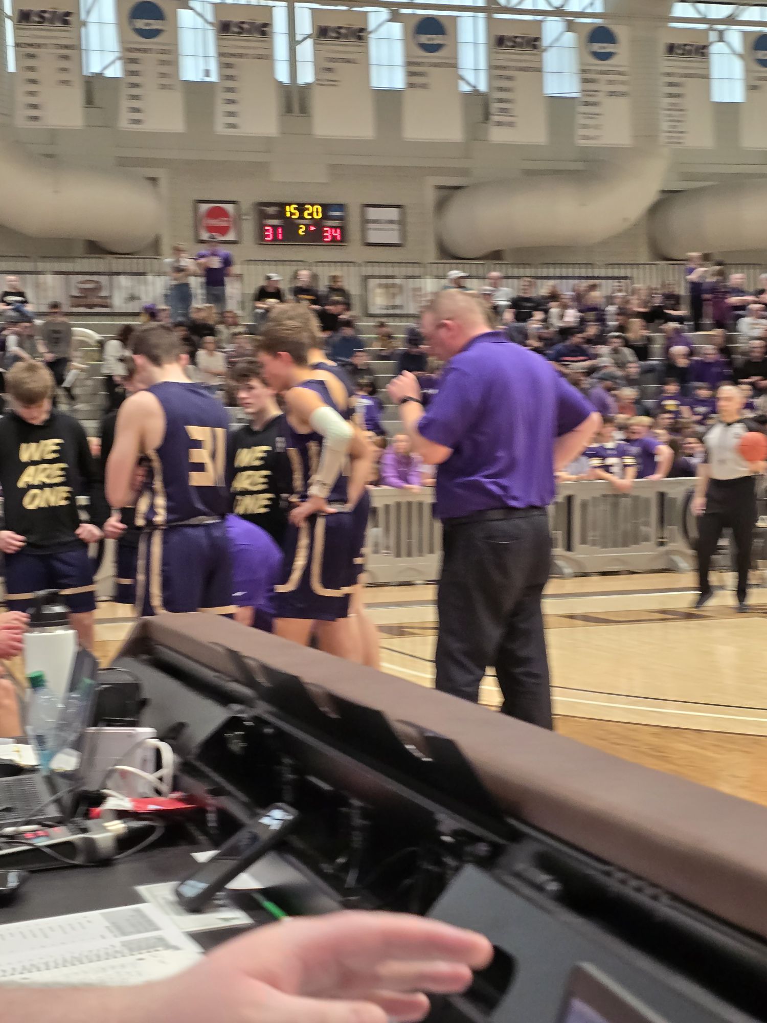 During section basketball playoffs at the RA Facility in Marshall I have the best seat in the house! You can’t ask for a better seat. I am courtside, between the two teams benches. You can’t help but get caught up in all the emotions of playoff basketball when you are basically on the bench.