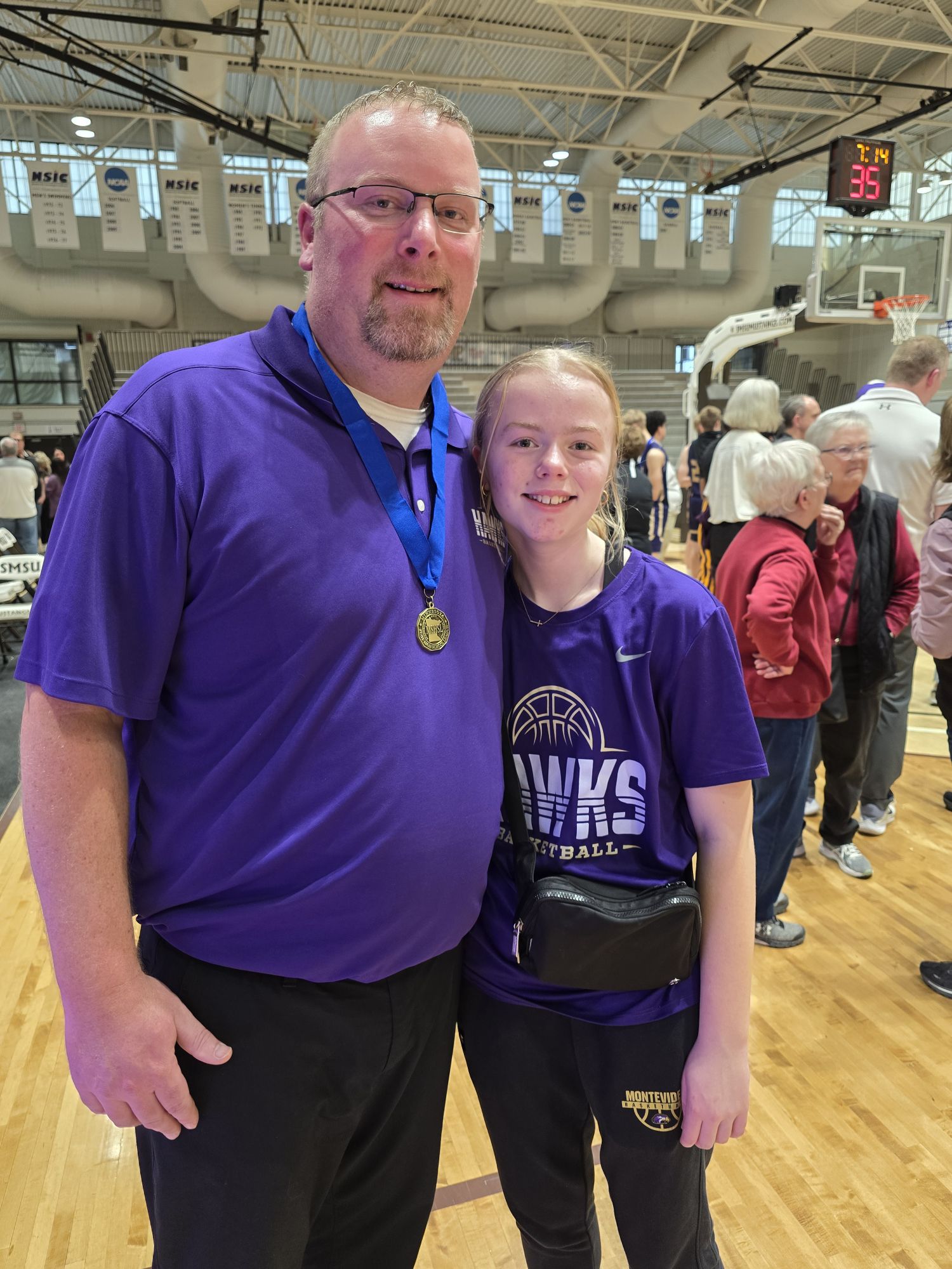 The first game Thursday was Montevideo taking on Jackson County Central. The finish to that game was amazing, when Griffin Epema made a basket with just two seconds left, and JCC got a half court shot off that almost went in at the buzzer. We sat right next to the Montevideo bench and watching everyone celebrate when the buzzer went off was the best. Seeing my son celebrate a state trip brought some tears to my eyes. I know how hard the coaches and players work during the season and how much time they put into the sport. It was amazing to see everyone smiling and hugging each other and the pure joy of going to state. I hugged my granddaughter Gretta and grandson Eli, memories they will remember forever.